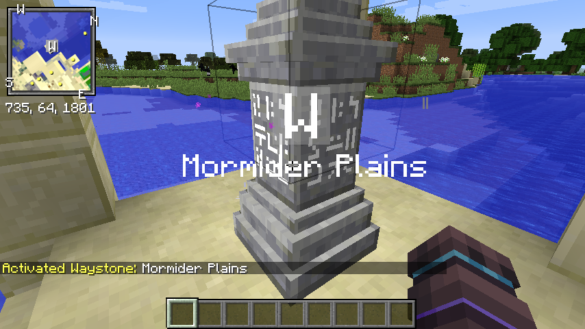 Сразу после активации Waystone в первый раз (будь то размещенный игроком, сгенерированный в мире или внутри деревни, или тот, который вы разместили сами), на Xaero's Minimap будет добавлена точка пути с символом "W" и названием точки пути, а также случайно выбранным цветом.