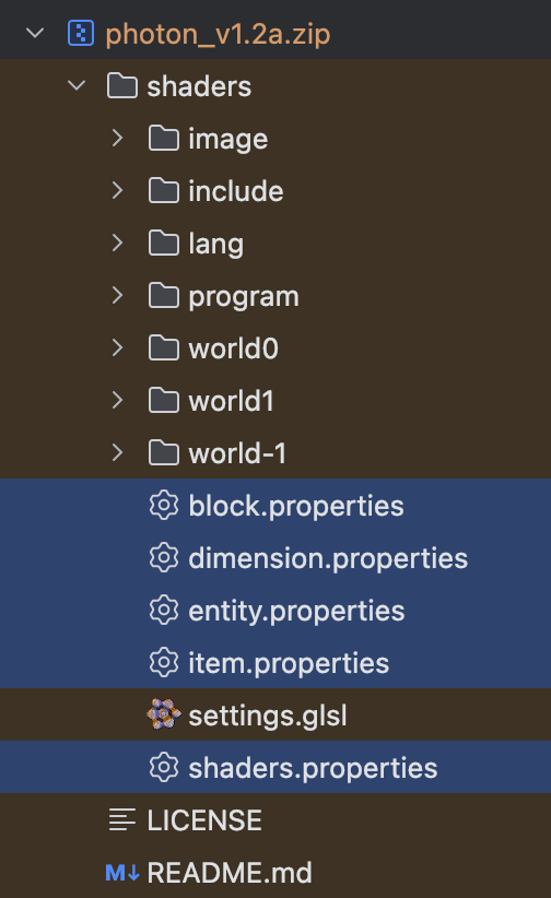 Шейдерпаки содержат некоторые файлы свойств, которые мы не можем изменять напрямую, если создаем модпак.