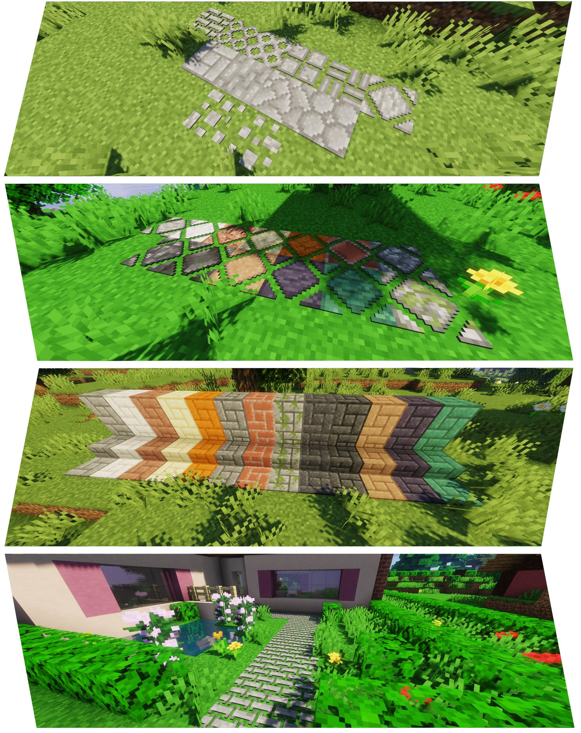 В последнем обновлении 1.1.0 мы добавили гравировку, блоки грунтовых дорожек, которые можно выравнивать, варианты ступеней, пользовательские теги...