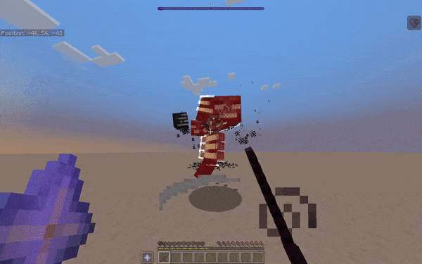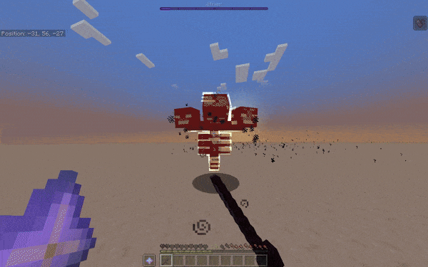 -Фаза 2: Получает атаку-удар под наклоном, создаёт лужу наносящего урон зелья на сложной сложности, создаёт взрыв размером с крипера, если включено разрушение от мобов. Начинается ниже 83% здоровья.