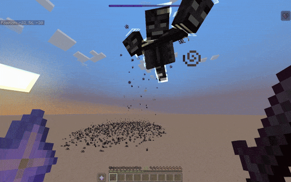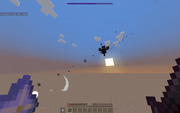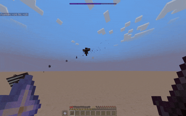-Фаза 4: Начинает парить ниже и ближе к игроку, получает атаку-рывок, подобную Визеру из Bedrock Edition. Созёт след из взрывов, если включено разрушение от мобов. Начинается ниже 50% здоровья.