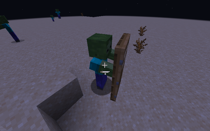 -Все двуногие враждебные мобы, не являющиеся illager'ами, будут случайно садиться и отдыхать. В это время они становятся нейтральными. Это также служит функцией оптимизации, так как отключает большую часть их ИИ. Однако их можно разбудить, создав шум!