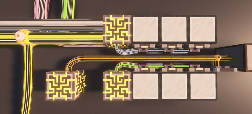 Трубы из этого мода не основаны на блоках: вы можете разместить несколько труб в одном блоке пространства или даже делить пространство с блоками других модов. Маленькие трубы могут поместиться в 3-пиксельный зазор над депо Create: