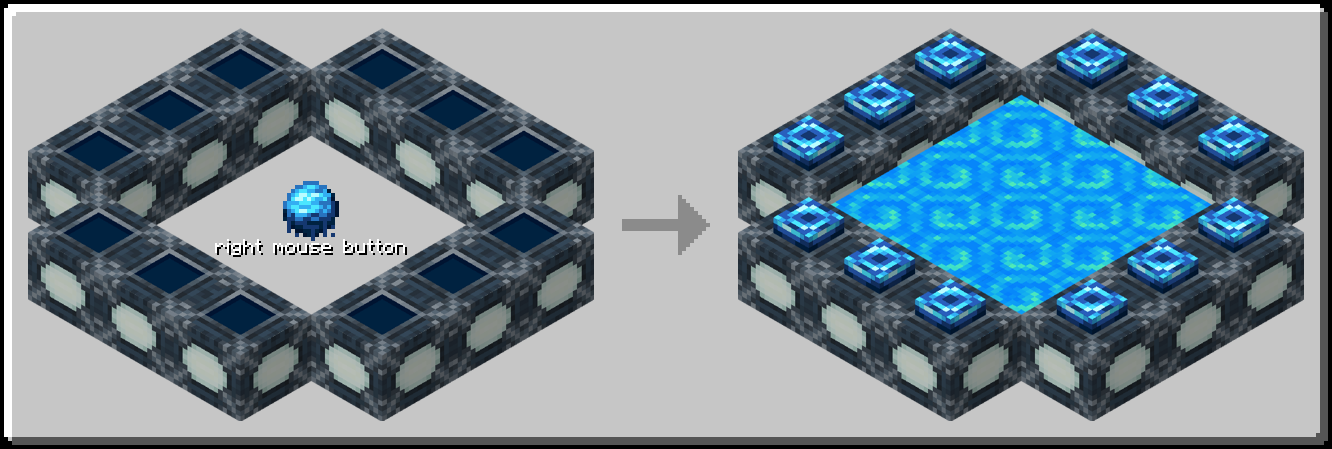 - Создайте 12 Атлантийских рамок и разместите их в форме портала в Энд.