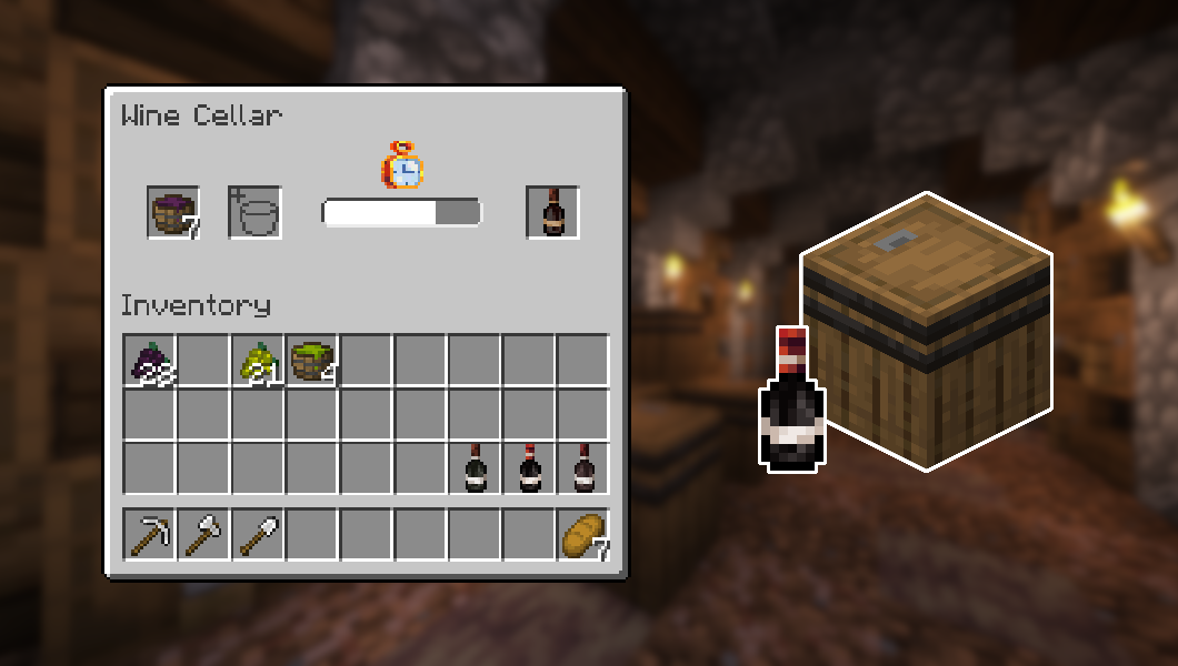 Create: Winery — это аддон для мода Create, который добавляет новые блоки, предметы и рецепты на винную тематику, использующие механизмы Create, позволяя вам построить собственную винодельню!