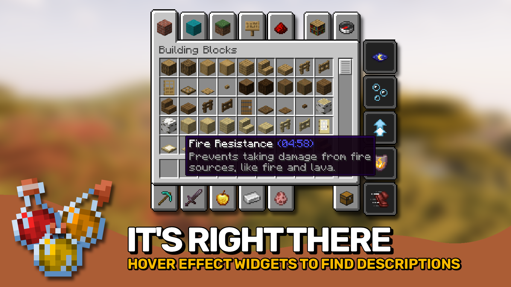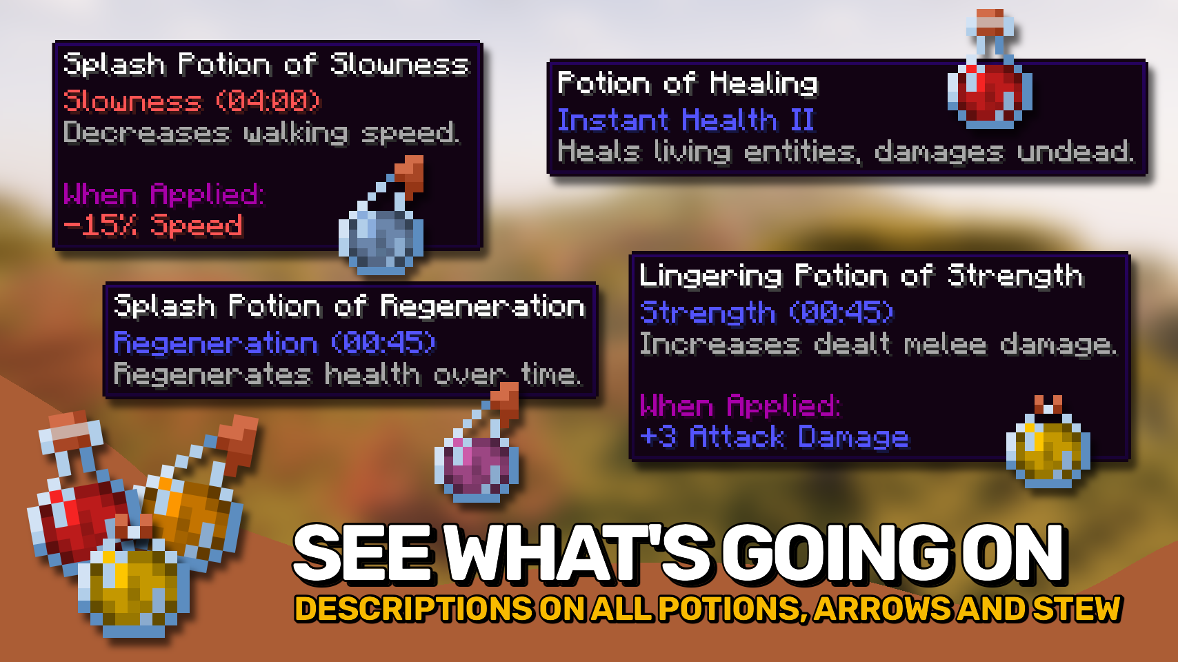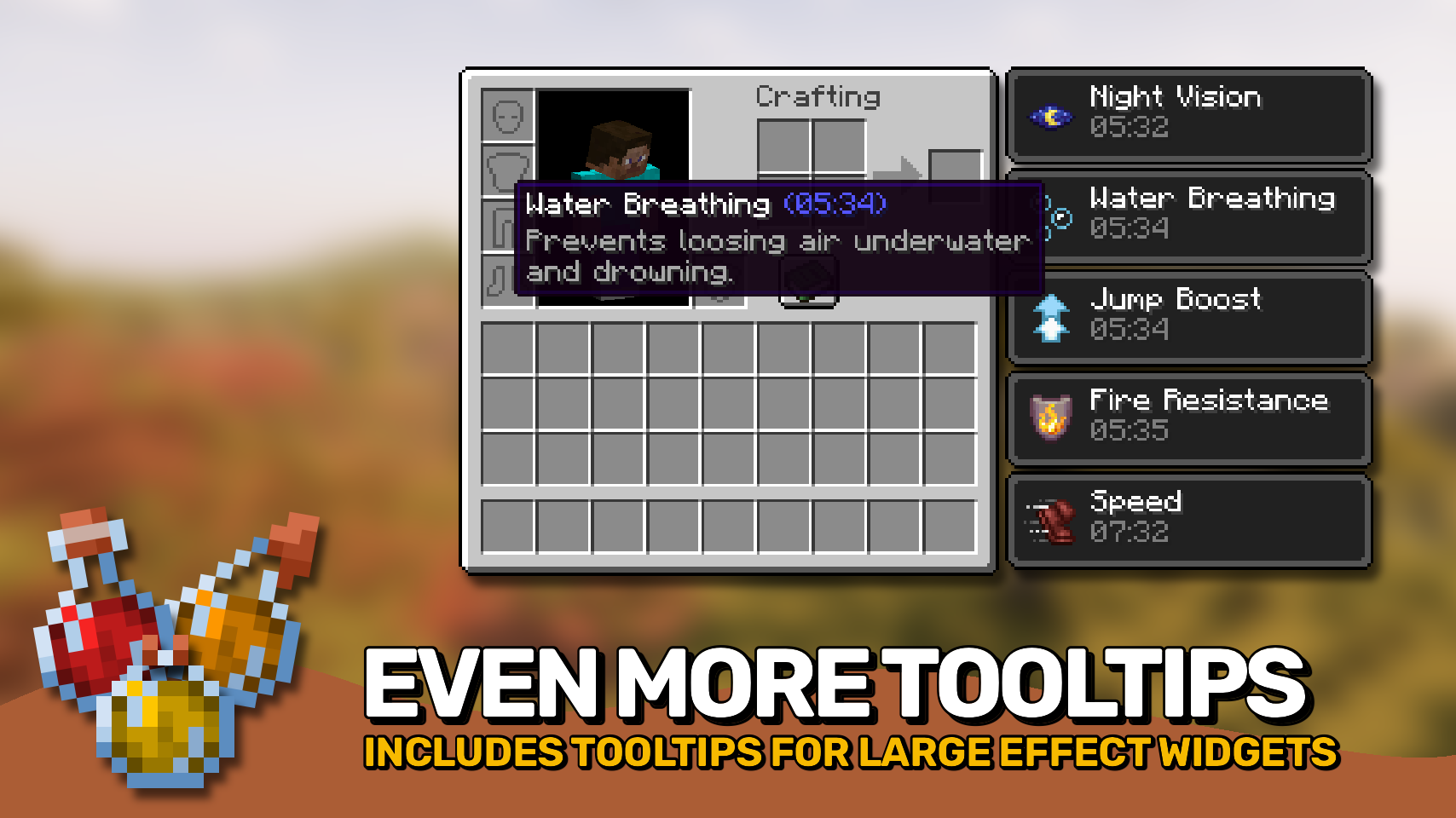 Чтобы дополнительно улучшить ваш опыт, связанный с эффектами зелий, обязательно также ознакомьтесь с Stylish Effects, Distinguished Potions и Just Enough Effect Descriptions!
