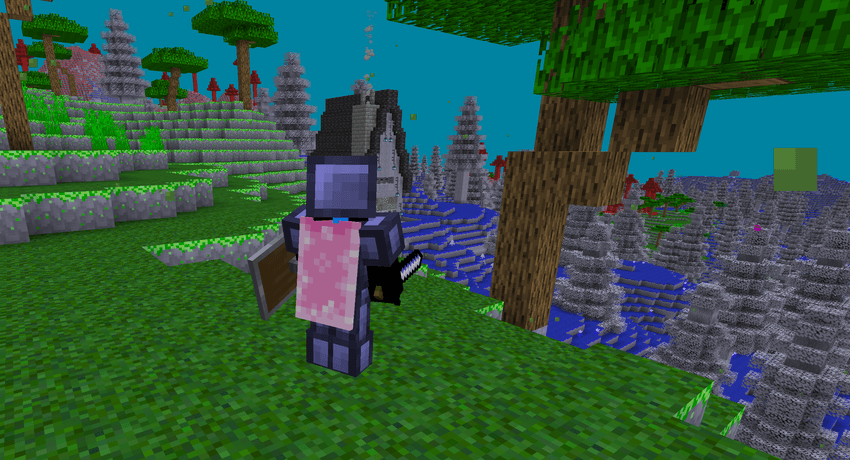 Спокойный лес: биом с фиолетовыми листьями, синей травой и множеством цветов.