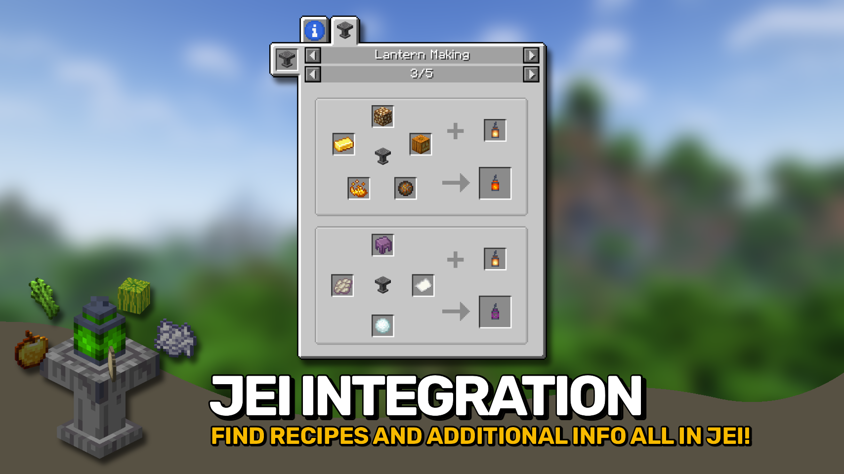 ▶️ Рецепты и информация о каждом фонаре находятся в JEI и REI.
