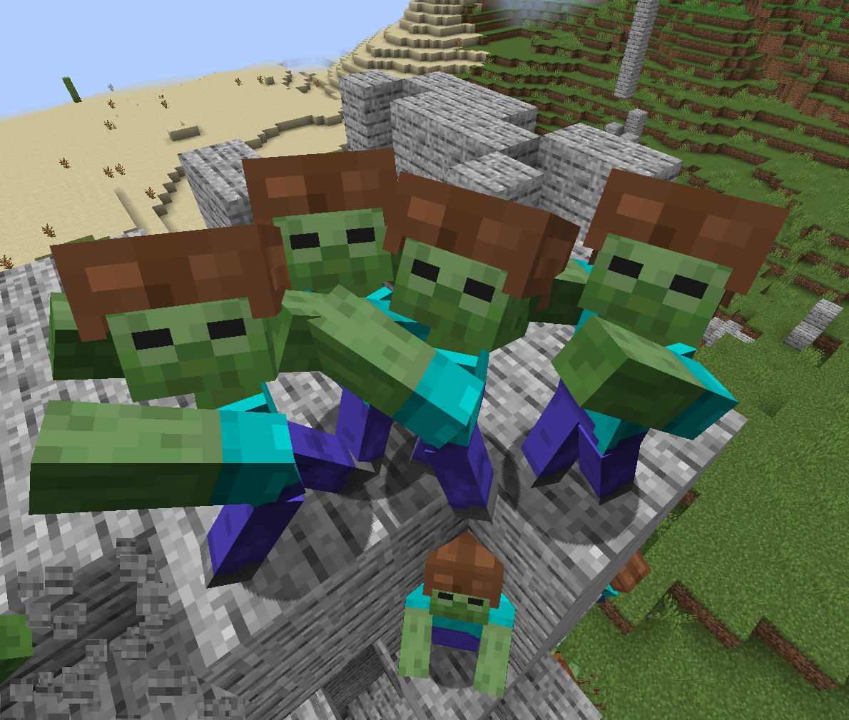 Этот мод добавляет зомби дополнительные возможности, такие как способность ломать блоки, строить и преследовать вас на больших расстояниях в любом направлении. А также убивать любых nearby не-зомби мобов, чтобы пополнять орду.