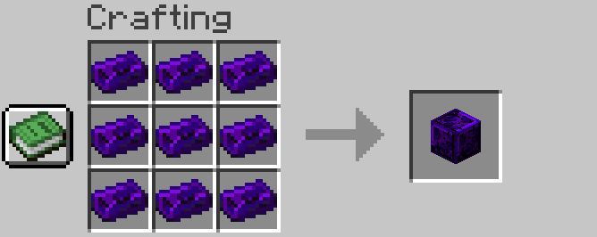 Block of Crying создаётся из 9 Uninfused Crying Ingots и может быть разобран обратно на 9 Crying Ingot.