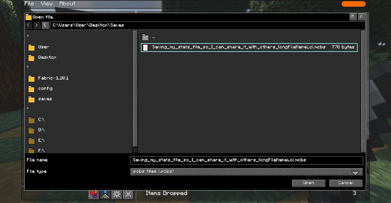 Обратите внимание, что открытие файла MCBS не «перезаписывает» вашу текущую статистику, так как он только показывает, как выглядела ваша статистика на момент сохранения файла MCBS.