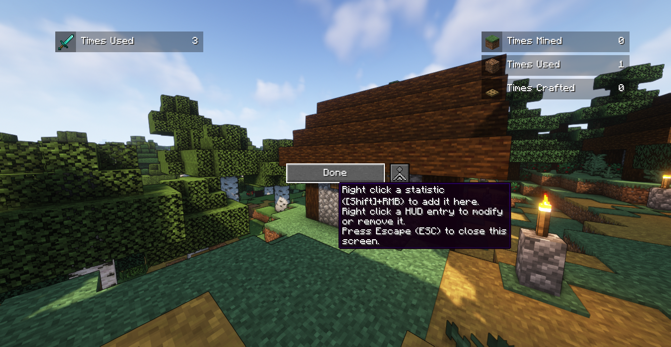 Обратите внимание, что любые дополнительные функции, которые этот мод добавляет в игру, такие как команда /statistics и «Система оповещений о статистике», могут быть отключены в конфигурации или через внутриигровое меню настроек мода.