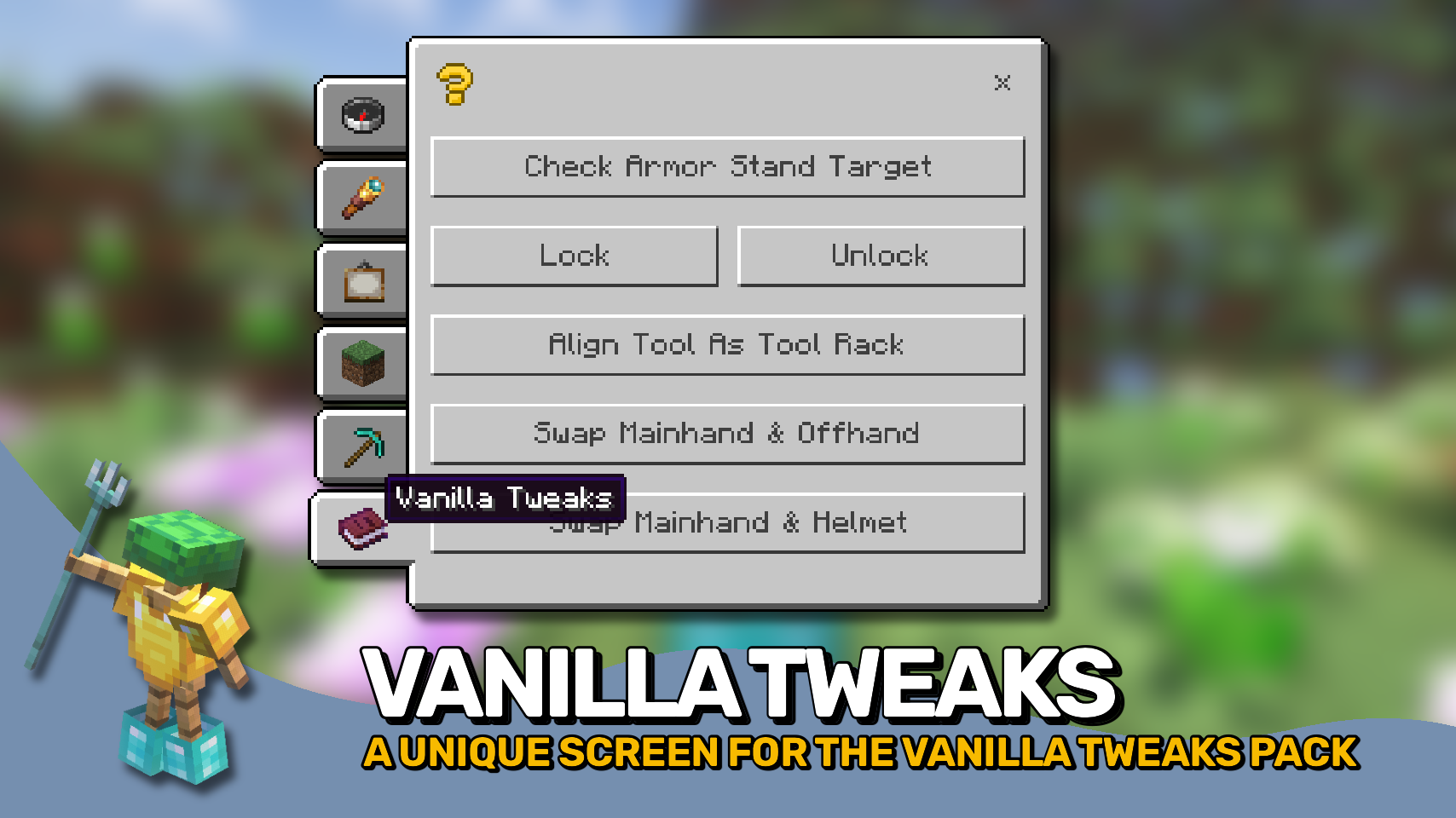 И самое лучшее: этот мод работает на ванильных серверах, где он не установлен! Если на сервере нет этого мода, но установлен Vanilla Tweaks: Armor Statues дата-пак, этот мод, установленный на вашем клиенте, может служить заменой книги, обычно используемой для управления функциями дата-пака. Чтобы использовать эту функцию, убедитесь, что вручную включили опцию конфигурации use_vanilla_tweaks_triggers