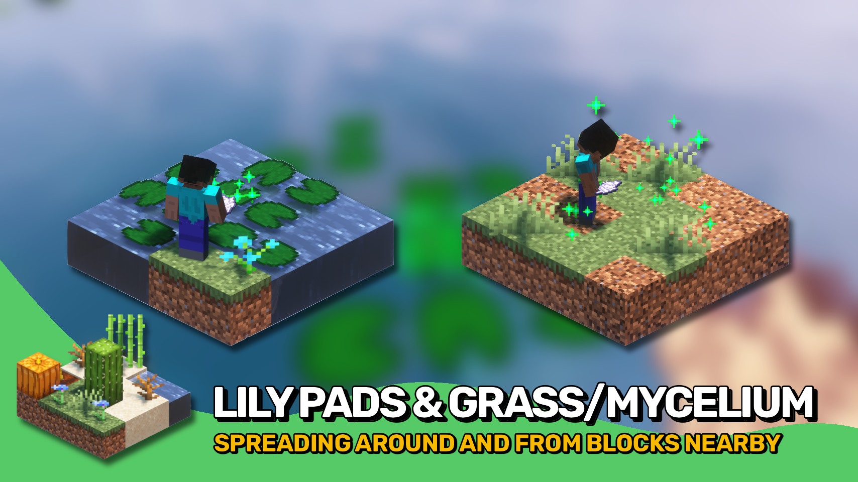 Universal Bone Meal заполняет все пробелы там, где костную муку нельзя использовать, но действительно следовало бы! Все варианты роста довольно уникальны и зависят от растения. Новые механики также работают с раздатчиками и могут быть индивидуально отключены в конфигурации.