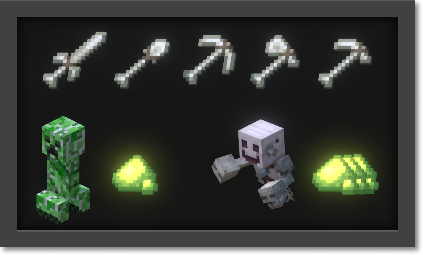 Мод добавляет костяные инструменты, которые легко создать (кости и нити). Эти инструменты поглощают часть души мобов, которых вы убиваете, в виде Эфирного пепла. Вы получите его пропорционально здоровью моба, которого убьете.