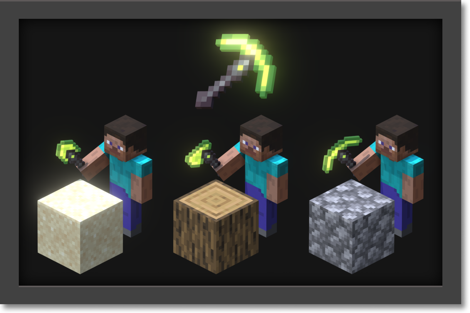 Инструмент-Метаморф — это реликвия, которая меняет форму в зависимости от блока, который вы добываете. Таким образом, он может разрушать любой тип блоков (Камень, Песок, Дерево, Глина... и т.д.).