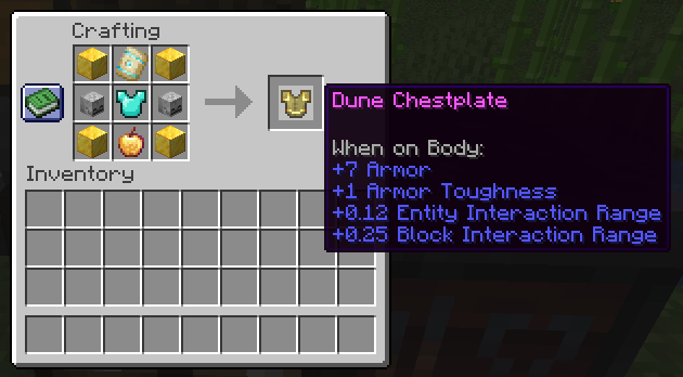 Когда игрок получает алмаз, он разблокирует все рецепты брони.