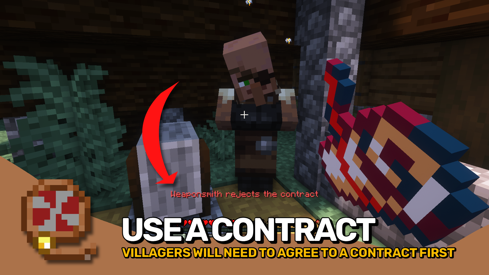 ▶️ Враждебное лассо может захватывать враждебных мобов, но есть загвоздка! Любой захваченный монстр должен иметь менее 50% здоровья и будет постоянно кусать вас, пока вы несёте лассо. Будьте осторожны!