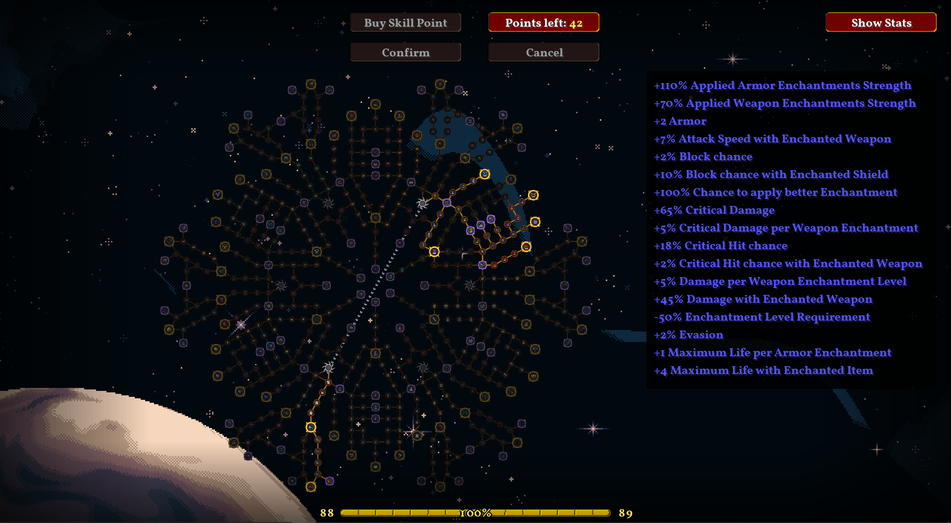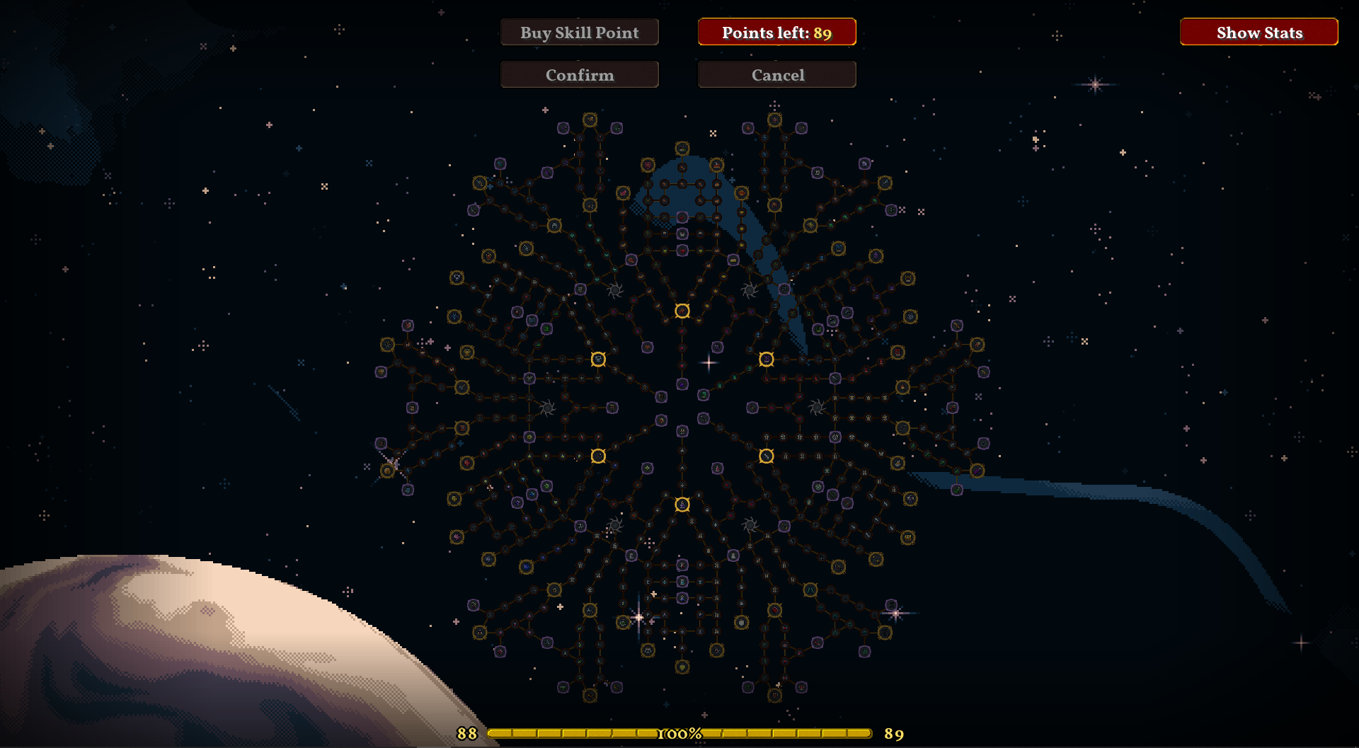 Максимальное количество очков навыков - 85 (настраивается), так что планируйте ваше дерево тщательно.