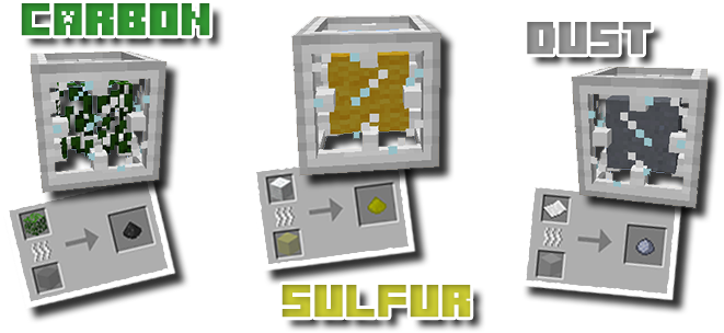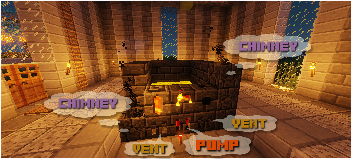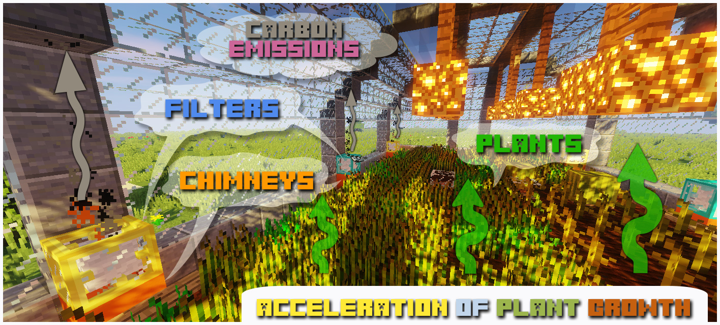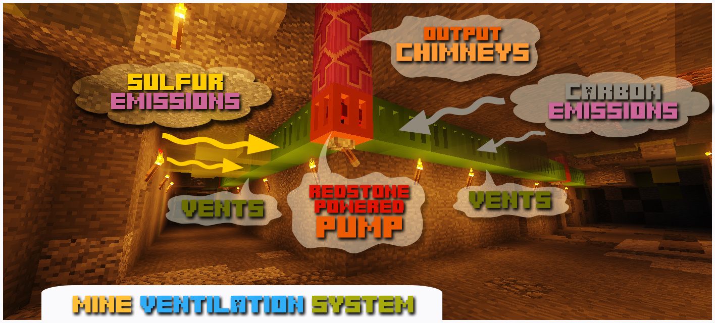 "Pollution of the Realms" — это мод, который добавляет блоки выбросов углерода и серы от сгорания различного топлива.