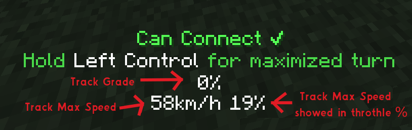 Мод также добавляет оверлей при ручном управлении поездами, который показывает свободный путь перед поездом, кривые торможения для отображения момента начала замедления и ограничения скорости.