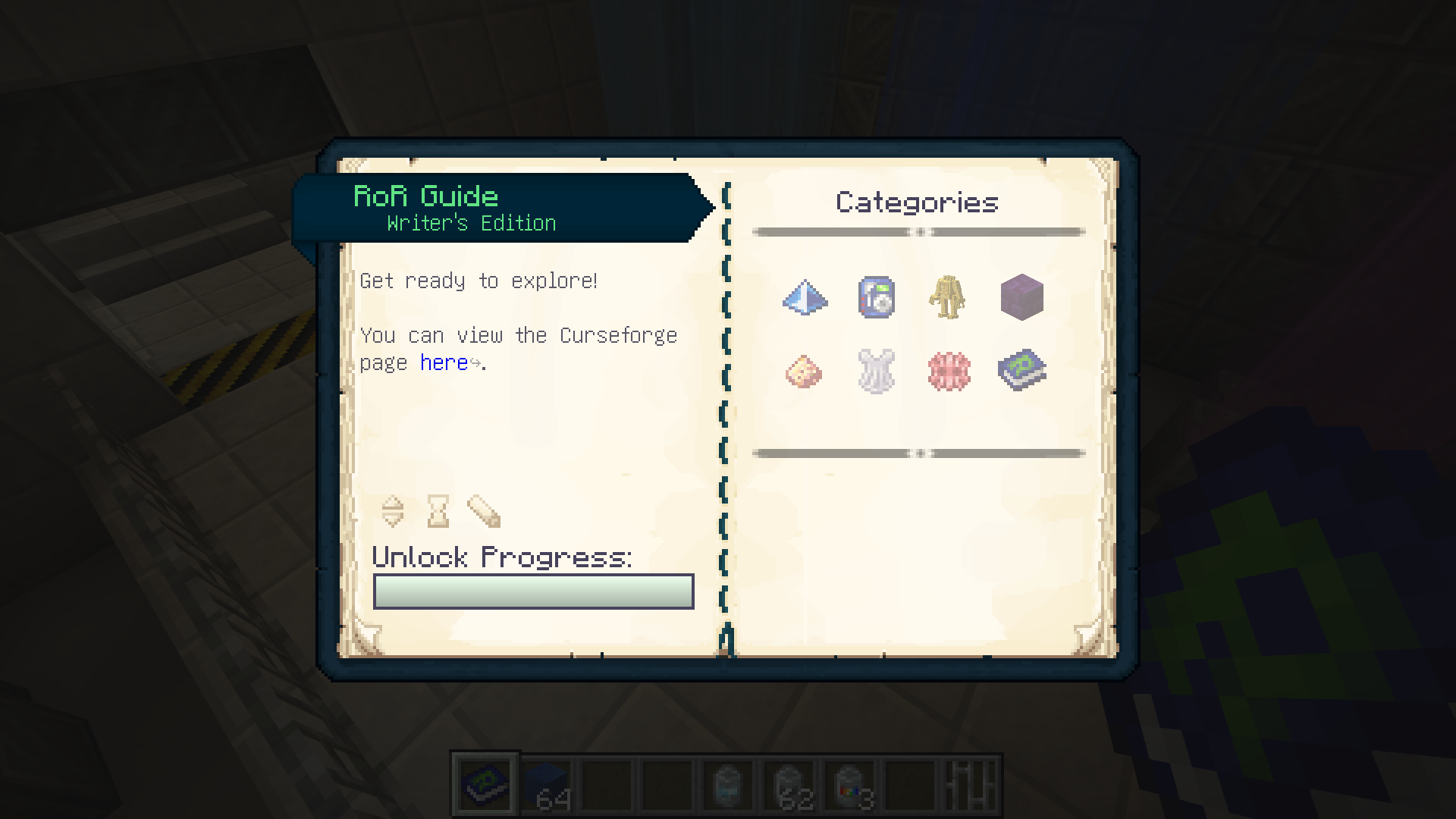 Мод требует Geckolib и Huge Structure Blocks, если вы устанавливаете с помощью лаунчера Curseforge, они будут загружены автоматически. Внутриигровое руководство требует Patchouli