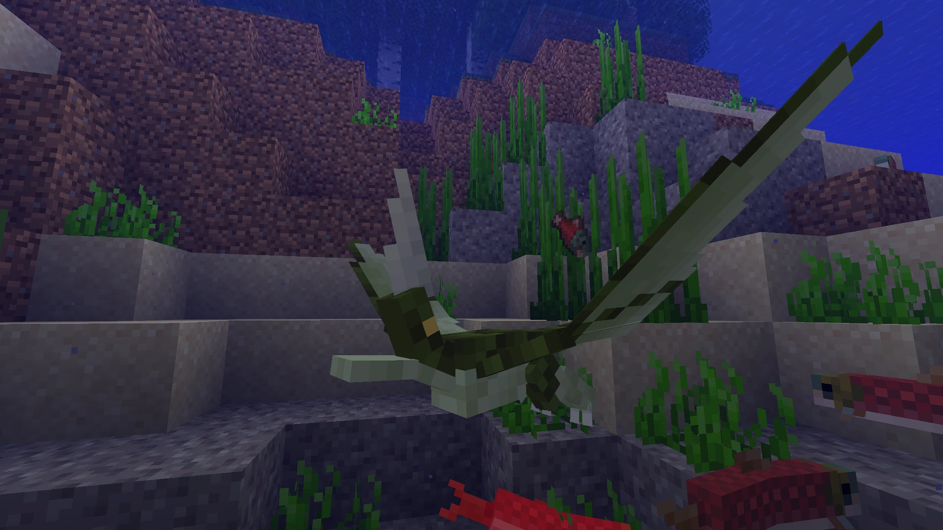 • Речной остророг — можно найти возле незамерзающих рек и на пляжах. Можно приручить с помощью ведра тропической рыбы и использовать флейту для дополнительного уровня контроля над вашими остророгами, например, отправить их ловить для вас рыбу или атаковать какого-либо моба. Также можно поместить одного на голову (нужно присесть, чтобы надеть или снять дракона). Имеет только ближние атаки.