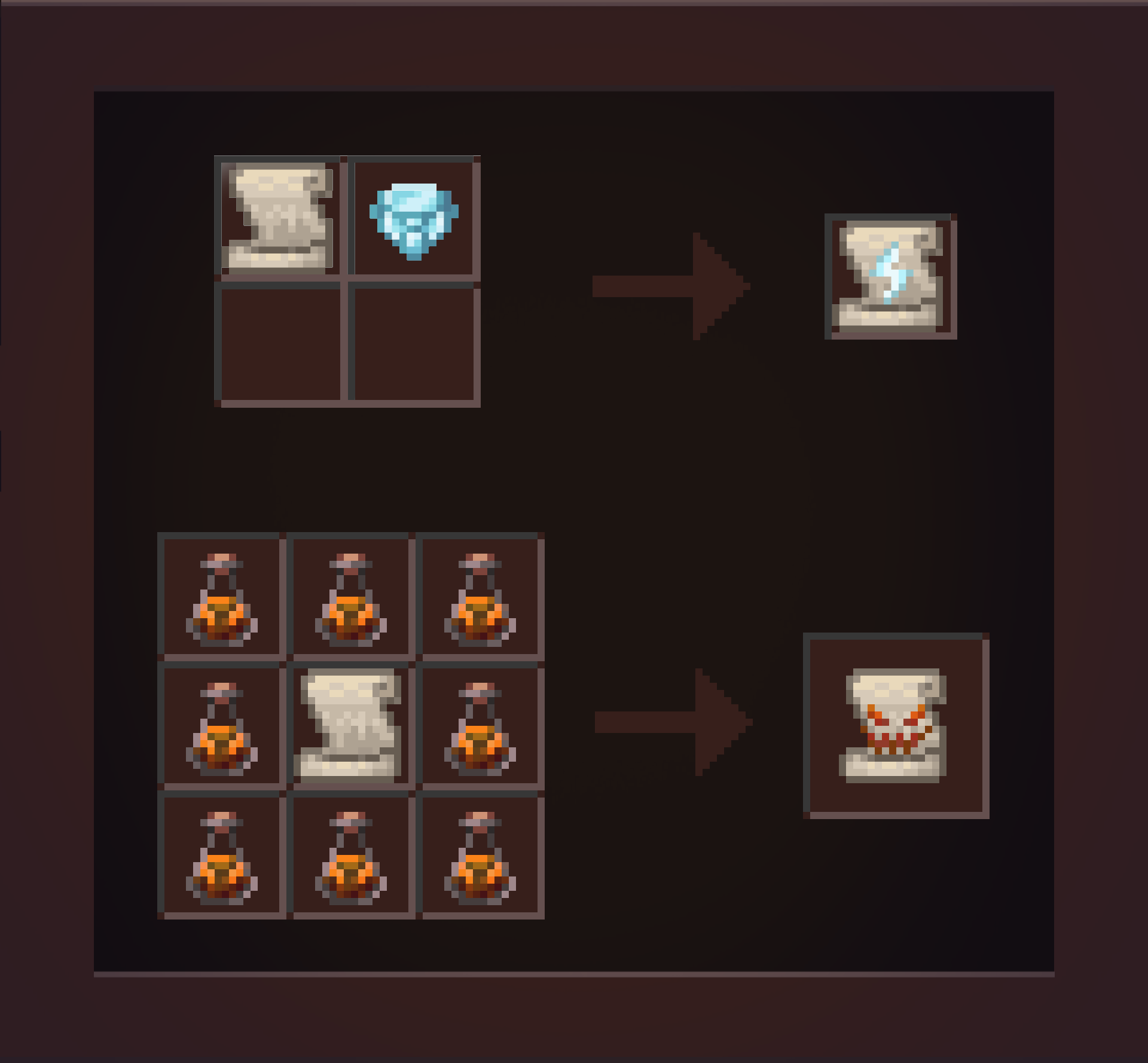 Тёмные ритуалы могут наградить вас несколькими предметами, но некоторые из них являются эксклюзивными и не могут быть созданы другим способом. К ним относятся: Тотем воскрешения и Пустые свитки, которые пока можно скрафтить в два типа свитков: Свиток грома, Свиток адреналина. Оба довольно мощные