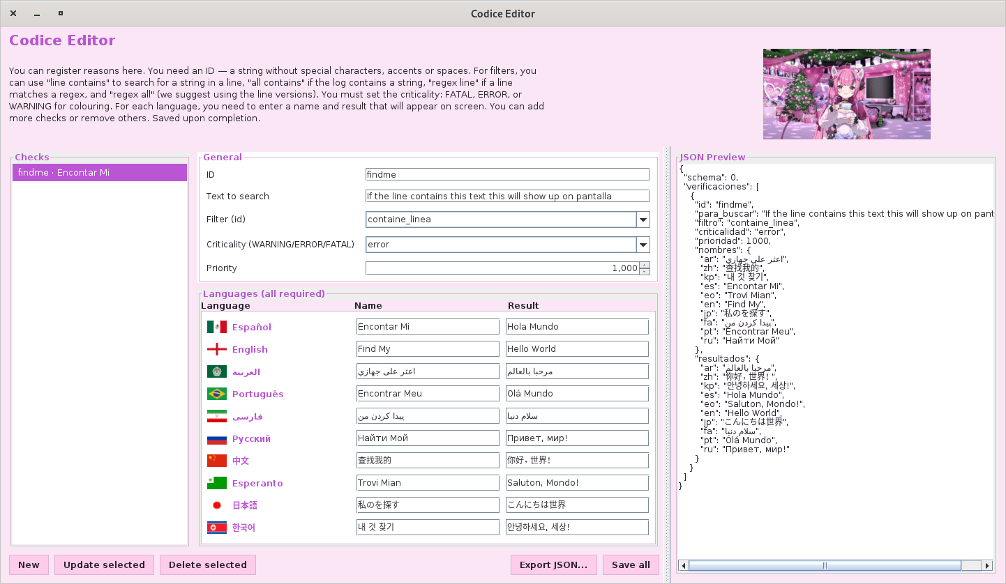 Если вы не хотите компилировать новый Java мод, вы можете программировать в JSON, создав файл с именем firmas.json в папке crash_detector. Он может создавать базовый анализ на основе того, содержит ли строка или полный лог строку или регулярное выражение. Вы можете создавать пользовательские причины сбоев для вашей корпорации или модпака. Вам не нужно уметь программировать, у нас есть графический интерфейс NoCode, который может написать код за вас.
