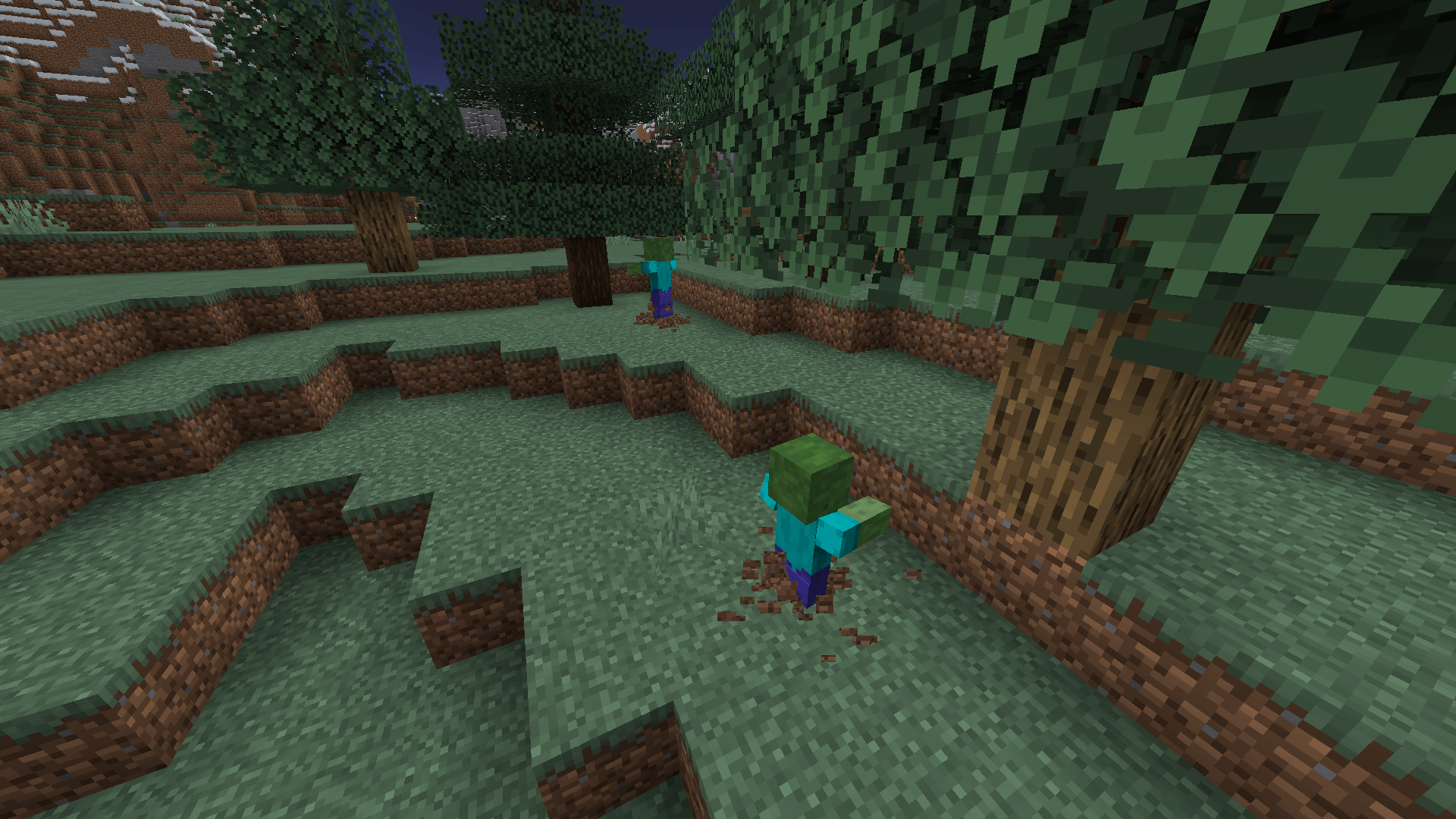 Враждебные мобы выкапываются из земли или материализуются при появлении.