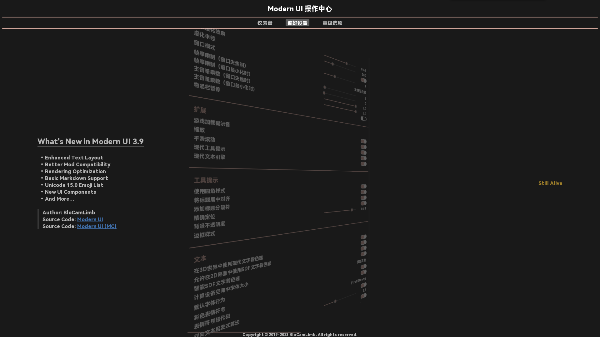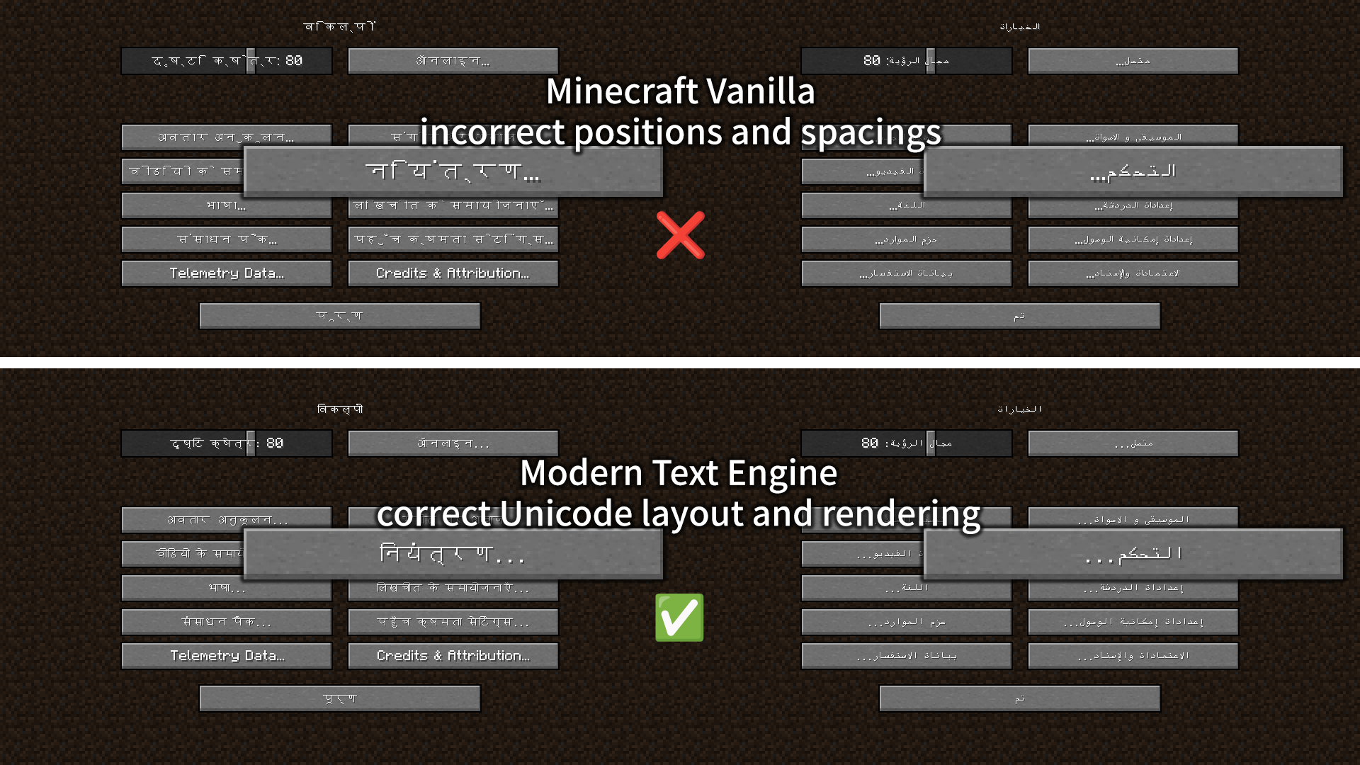 Эта модификация также включает мощный механизм компоновки текста и систему рендеринга текста, разработанные для Minecraft.
