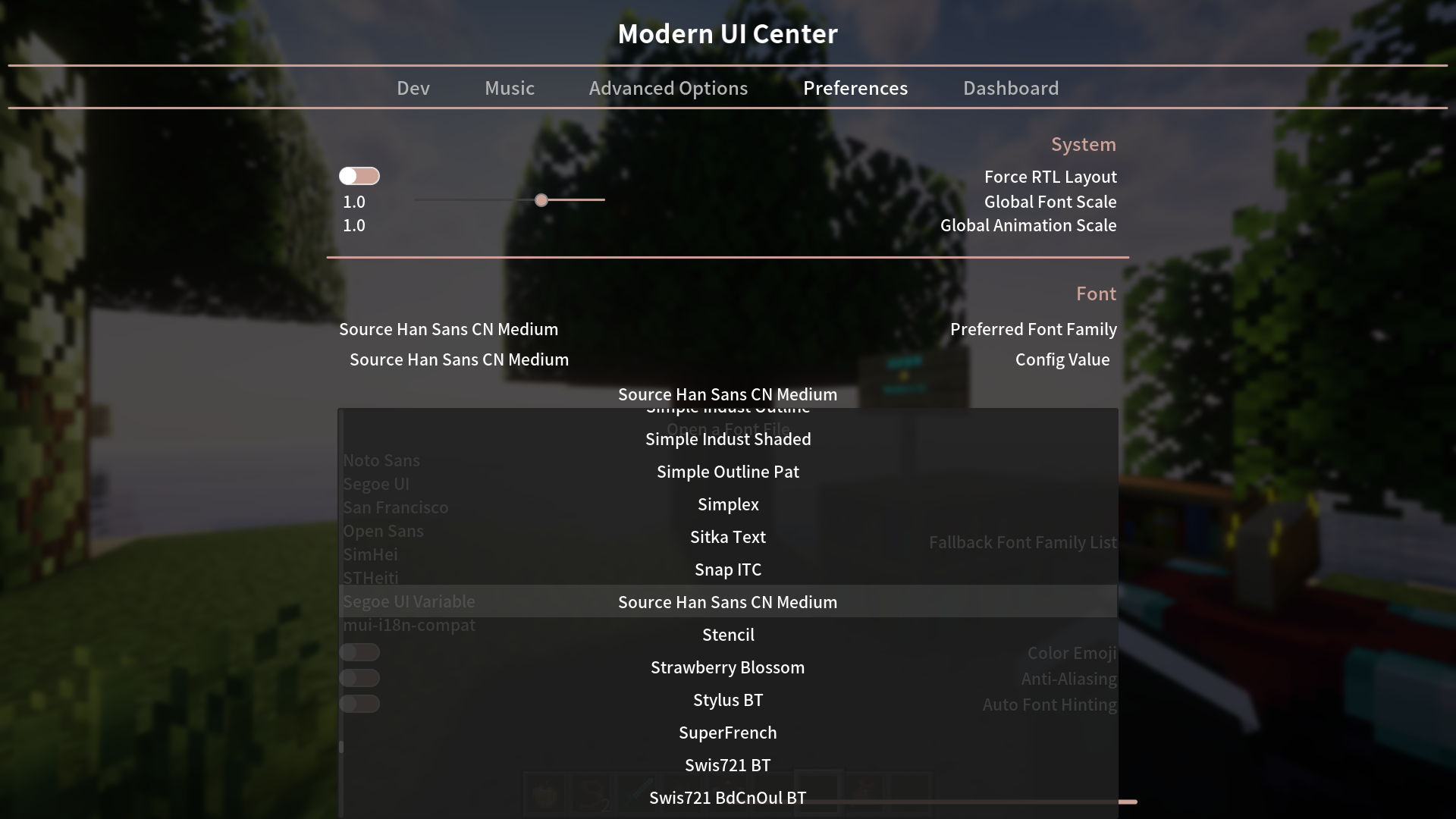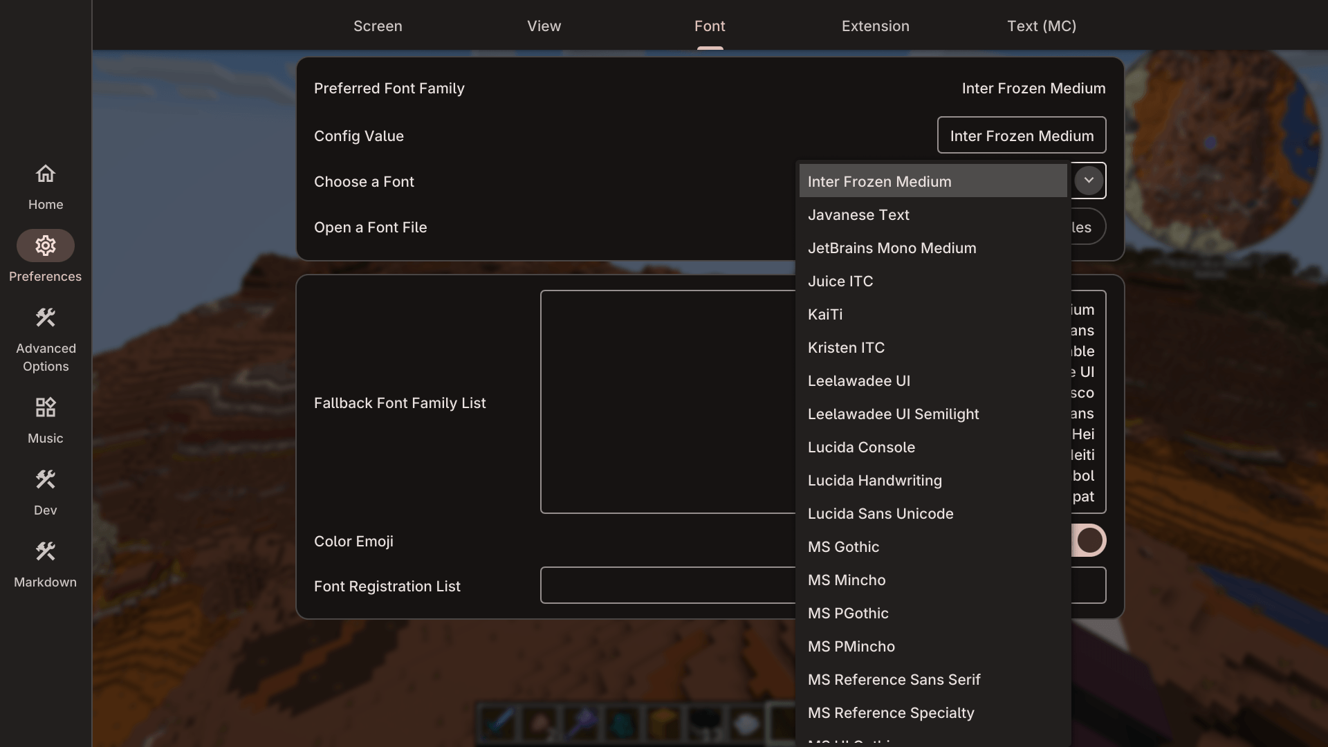 • Совместимость с определением шрифтов JSON в Minecraft (растровые шрифты, TTF шрифты)