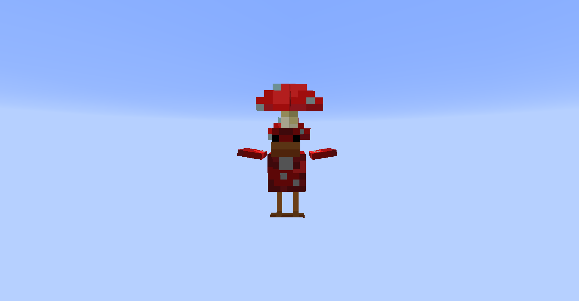 - Mooblooms иногда размещают цветы своего типа на блоках травы, а cluckshrooms размещают красные грибы.