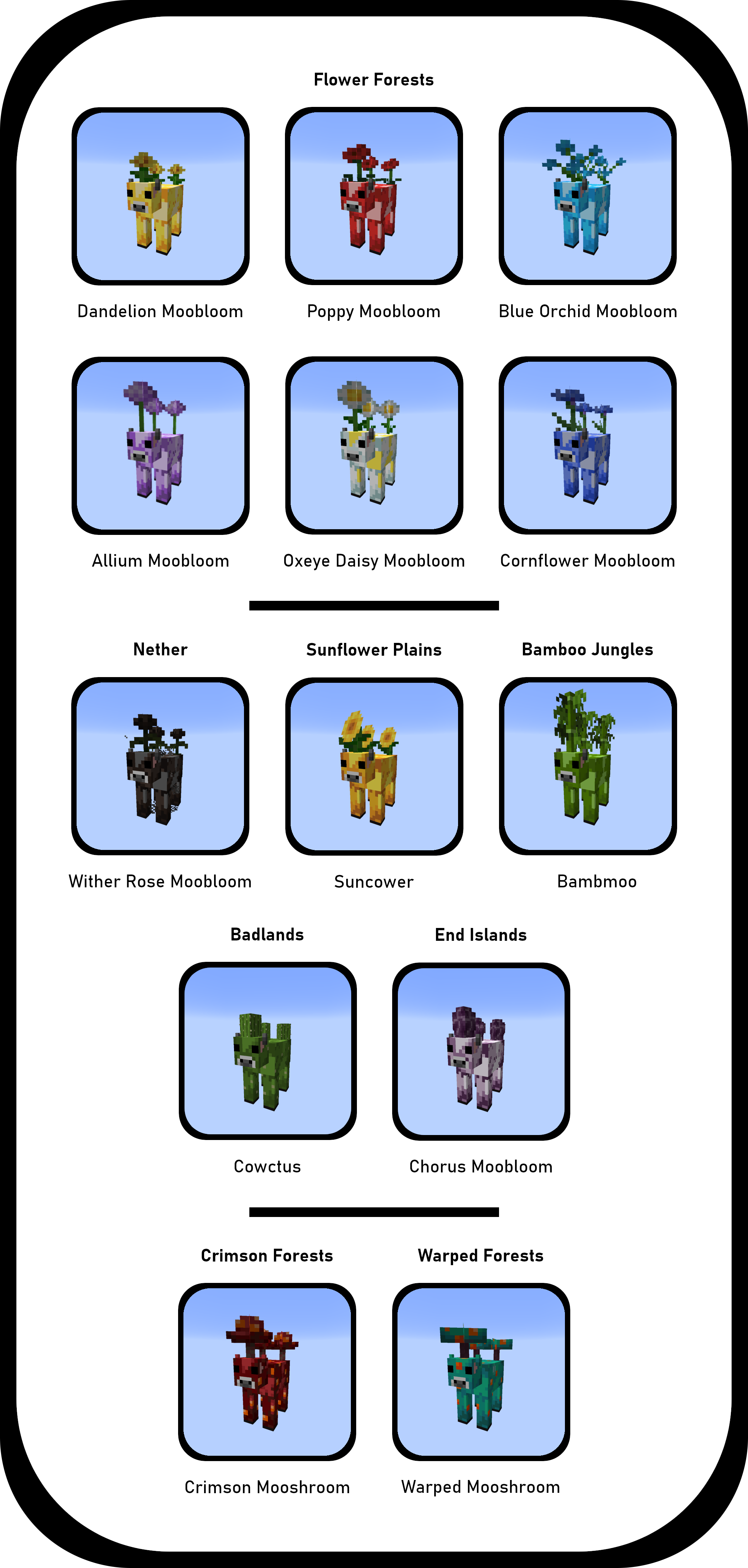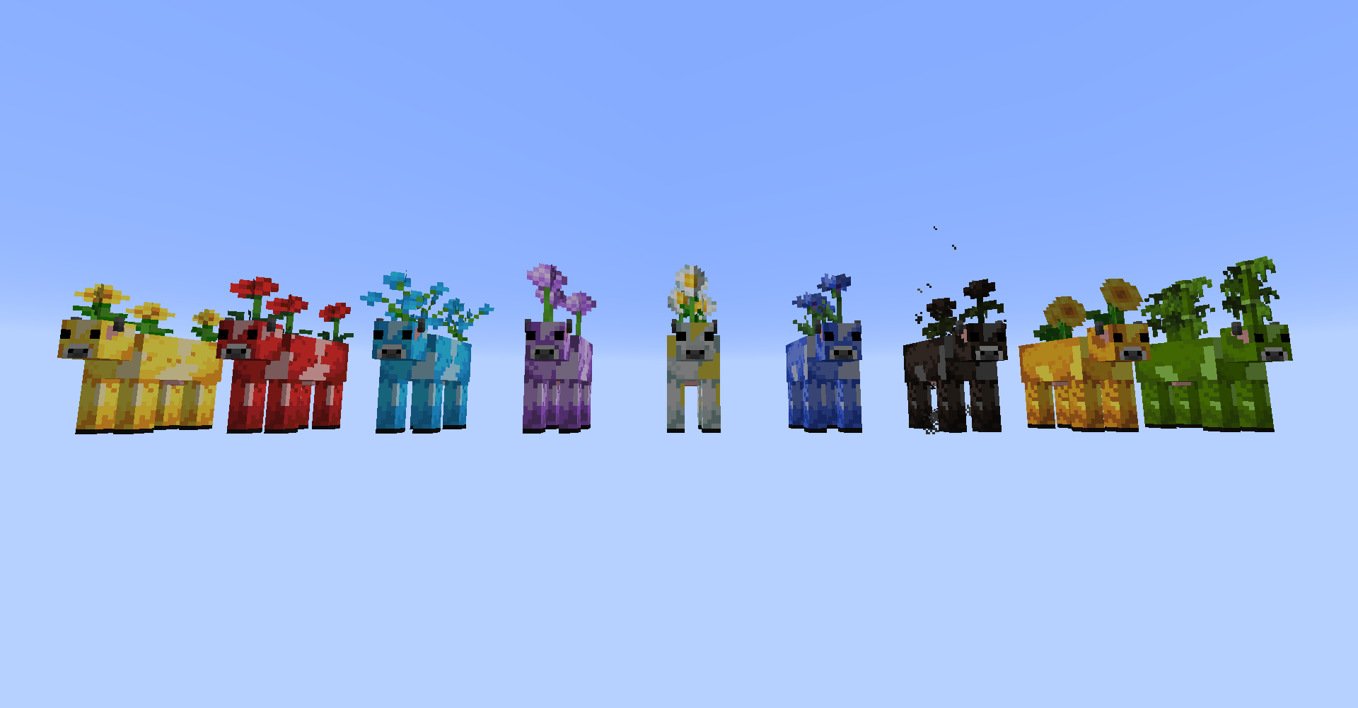 Mooblooms — это мод, вдохновленный игрой Minecraft Earth, добавляющий красочных и цветущих коров.