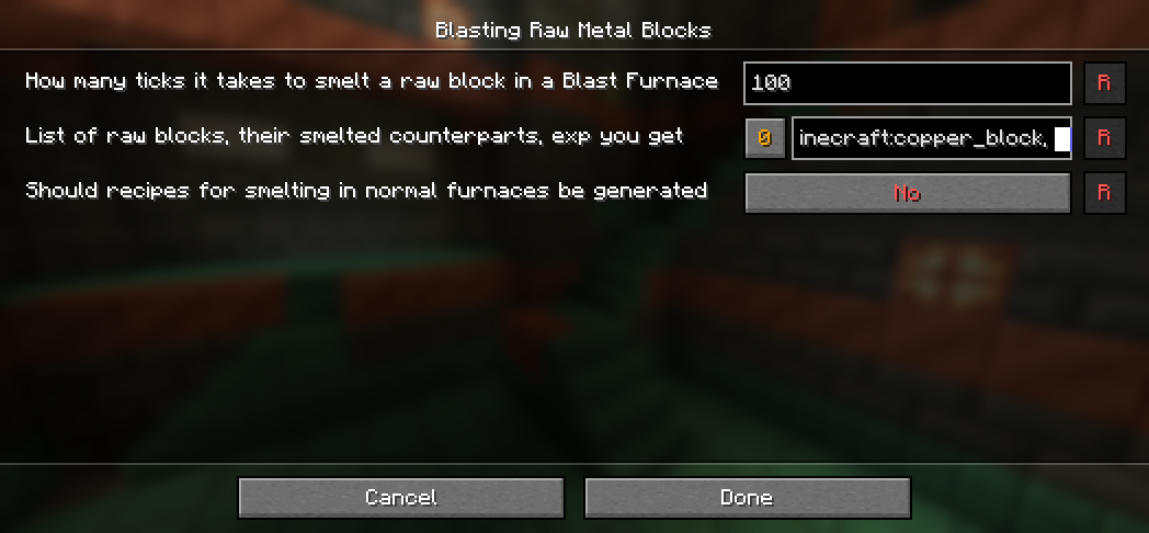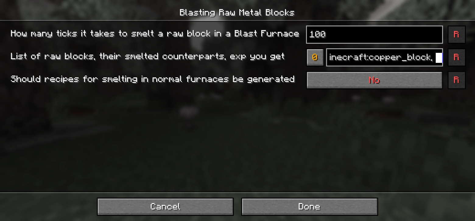 Этот полностью настраиваемый мод позволяет переплавлять целые блоки необработанных металлов в блоки соответствующего металла. Это делает переплавку больших количеств необработанной руды намного быстрее после возвращения с горной вылазки.