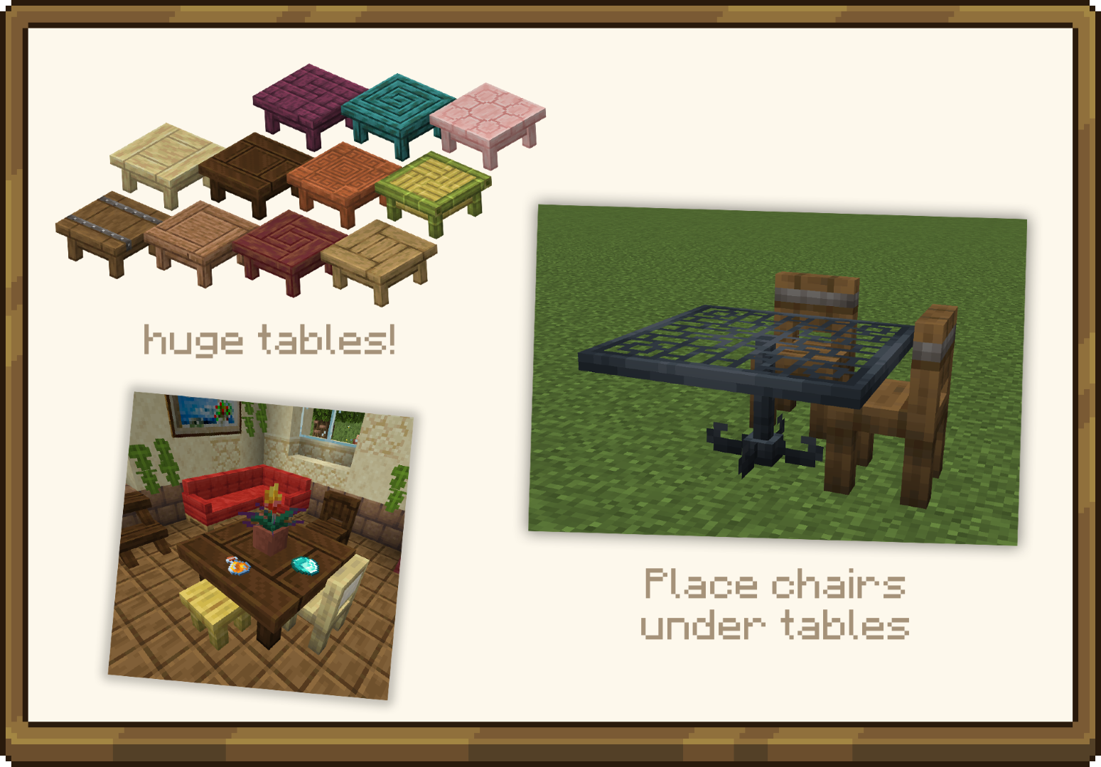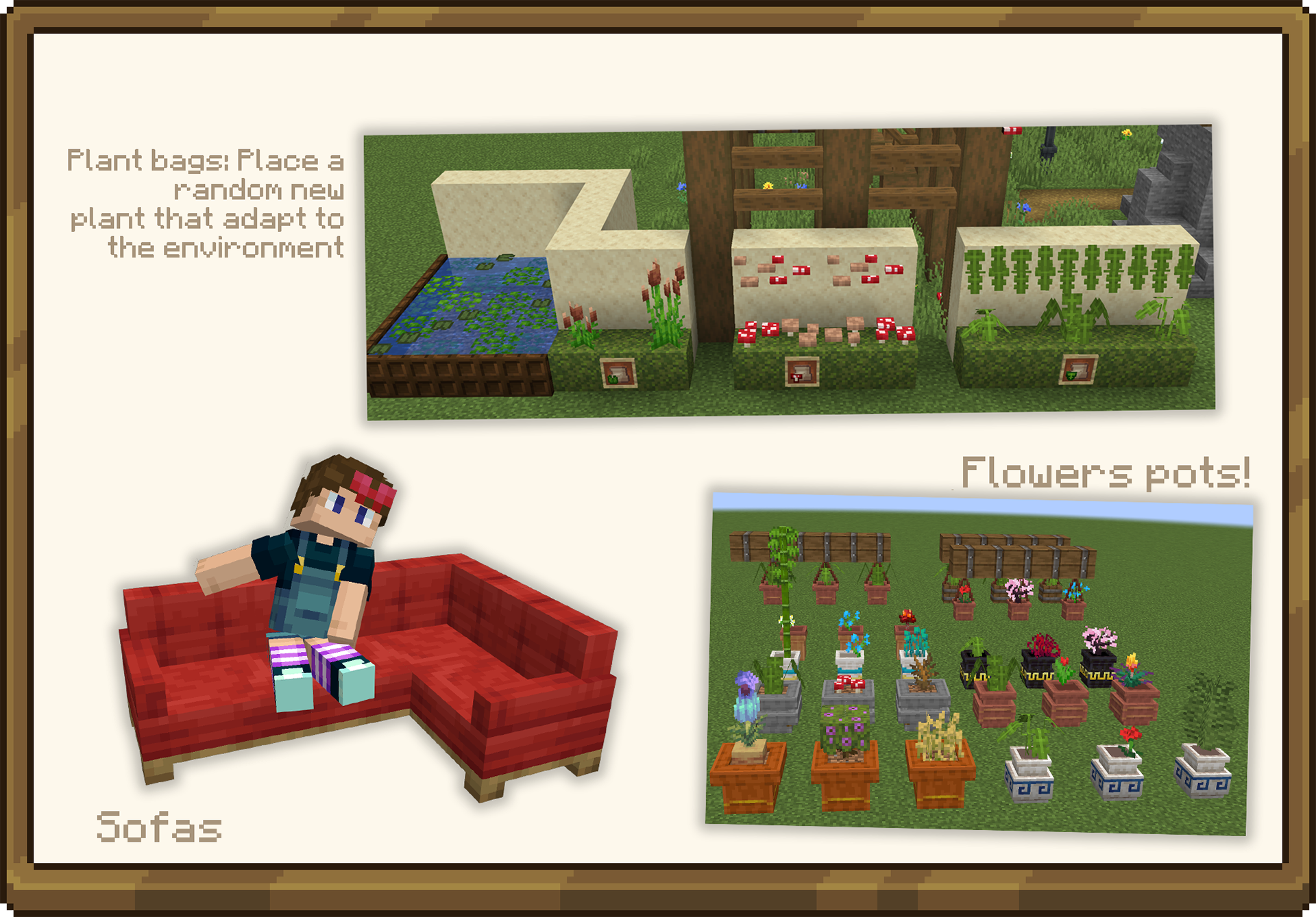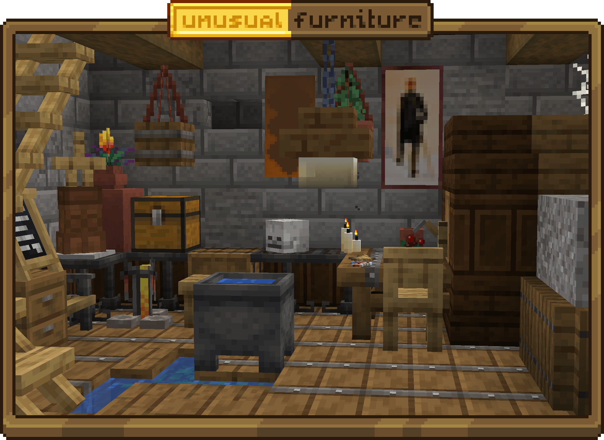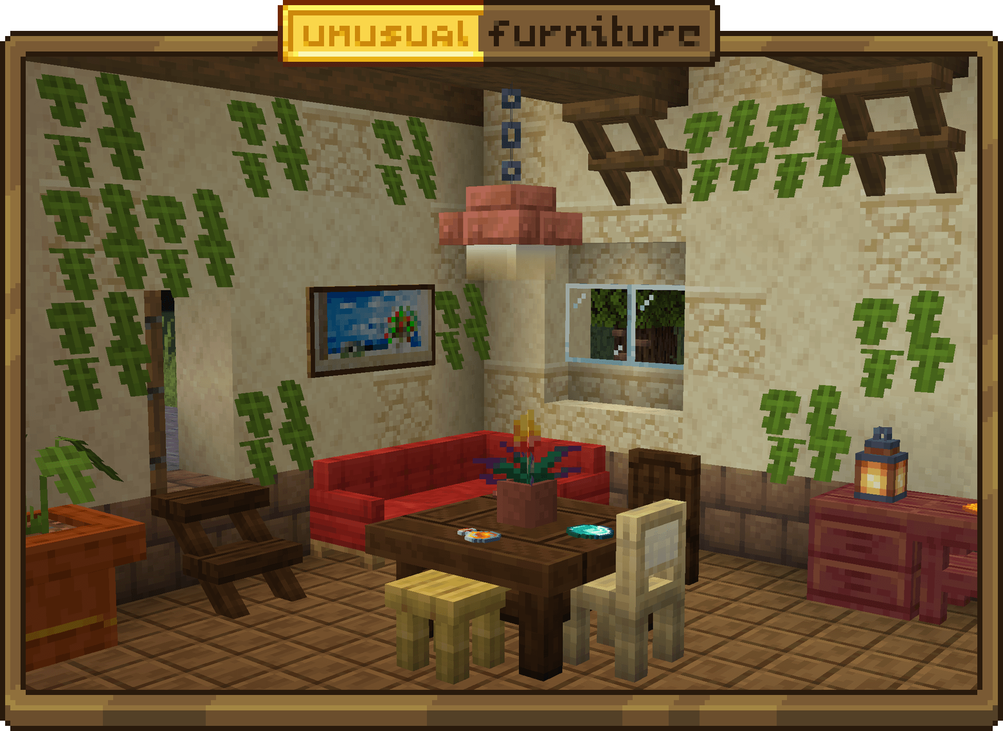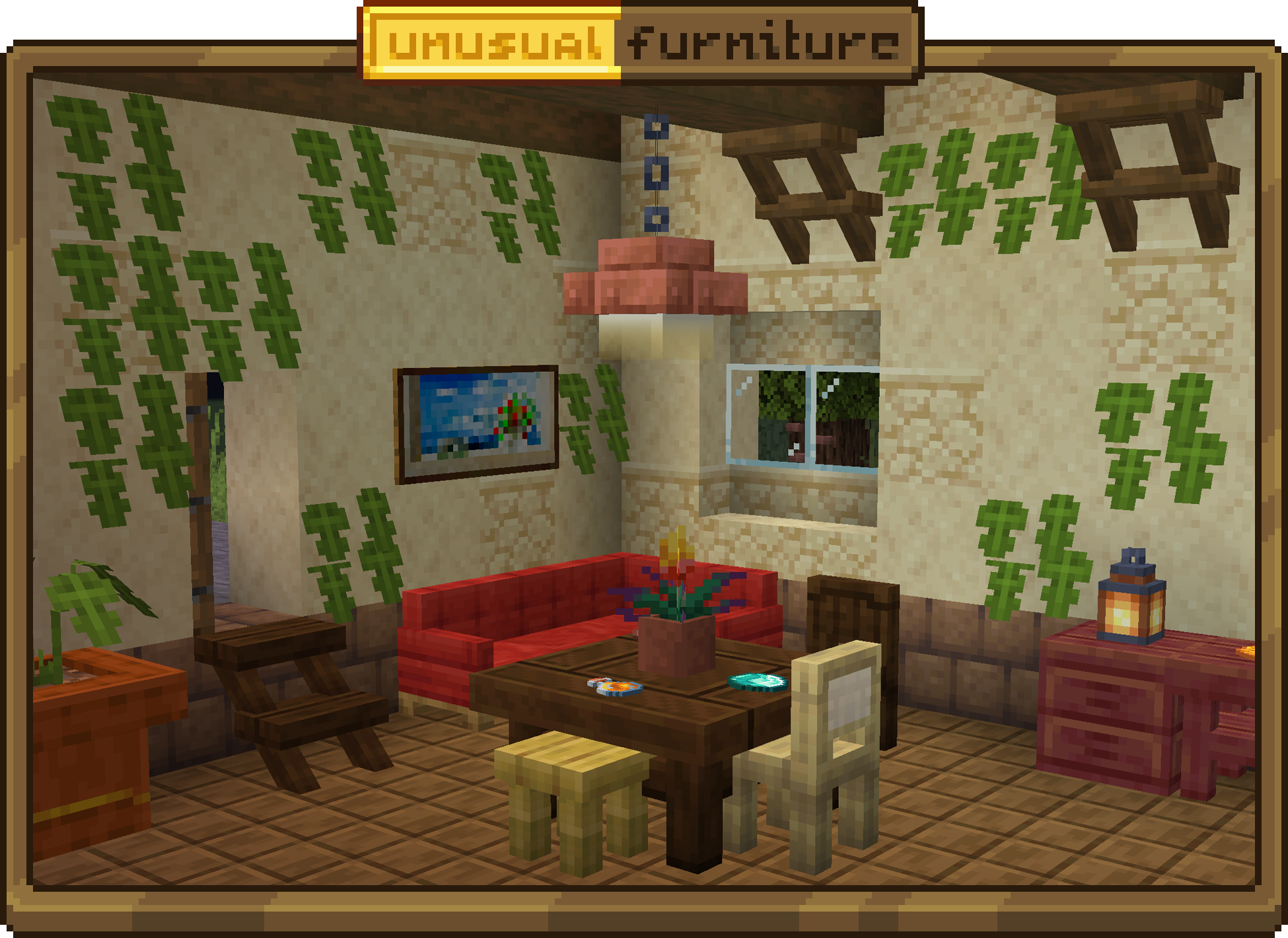 Всегда хотели качественный мод на мебель в стиле ванильного Minecraft? Unusual Furniture — это мод для вас! Играйте с новой мебелью, строительными блоками, реквизитом и многим другим. Большая часть мебели также является интерактивной.