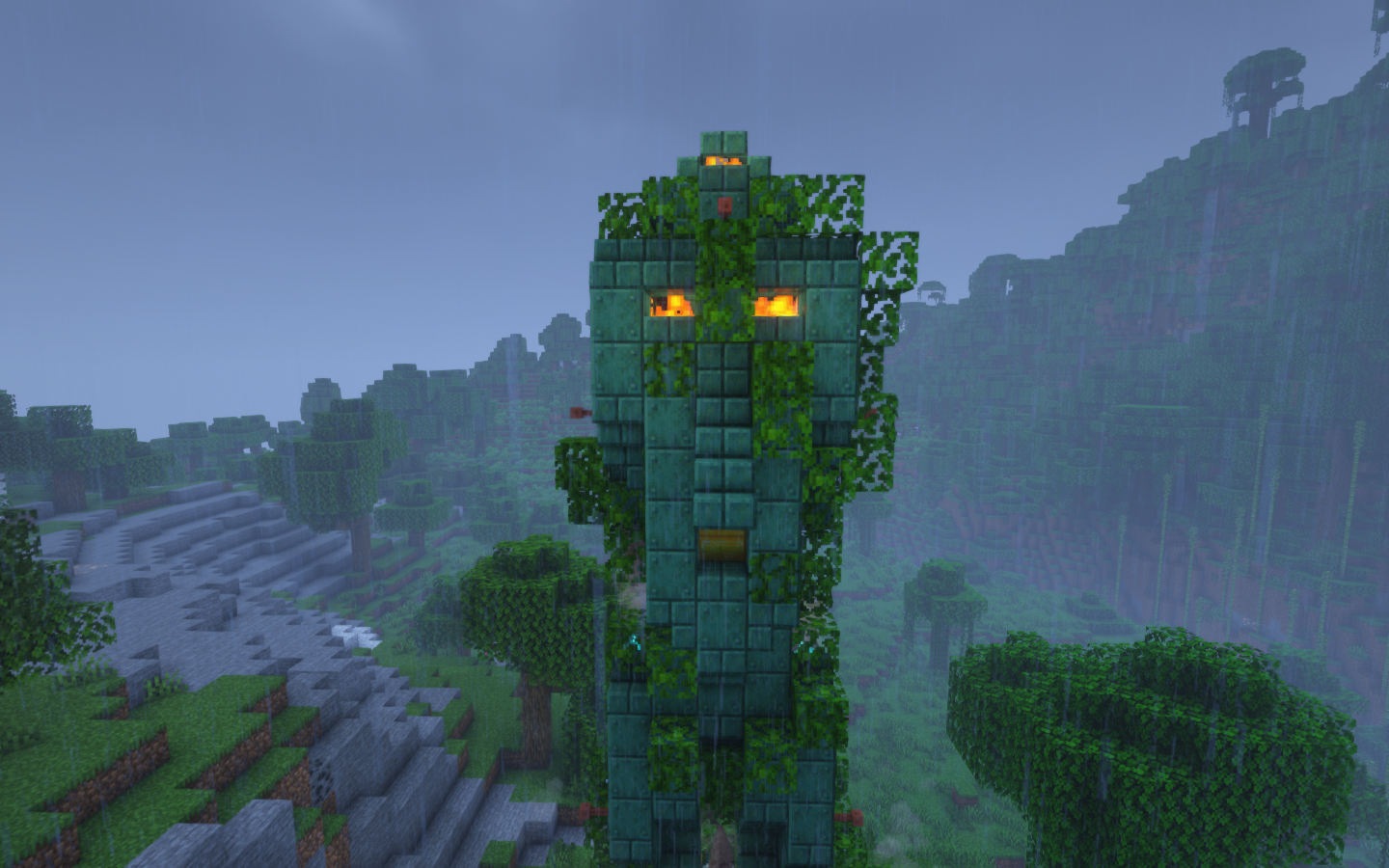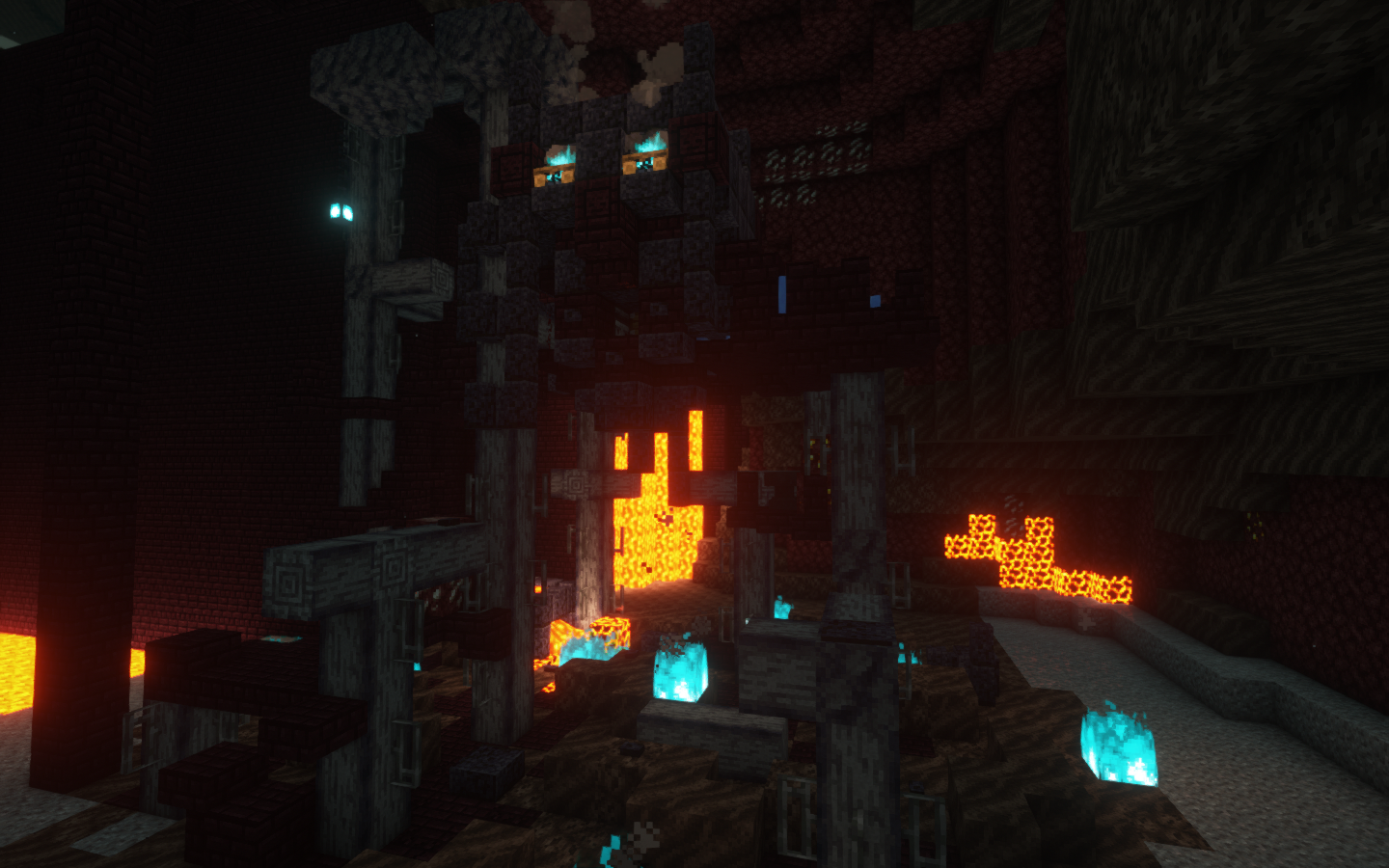 Кроме того, многие из наших структур используют механику, присутствующую в ванильном Minecraft, чтобы познакомить игроков с этими функциями или решить проблемы базовой игры — башня в Лесу, которая учит разжигать и тушить Костры, заводские руины в Незере с генератором базальта, сад в Энде, демонстрирующий различные инструменты Нотных Блоков, и это лишь несколько примеров. Добыча, найденная в определенных структурах, также может включать предметы, которые иным способом нельзя получить в выживании Minecraft, но таким образом, который не ломает игровой баланс.