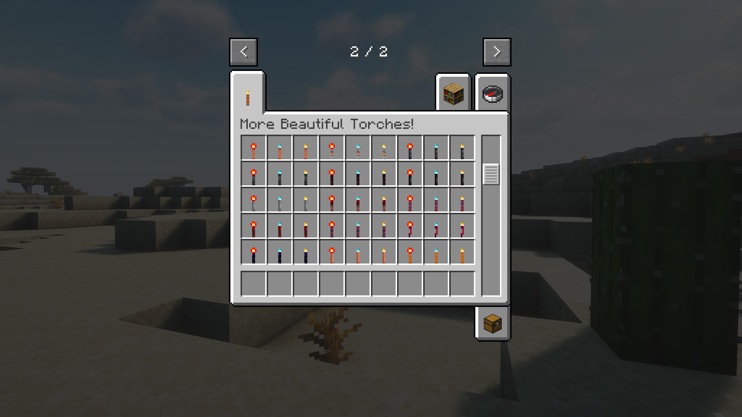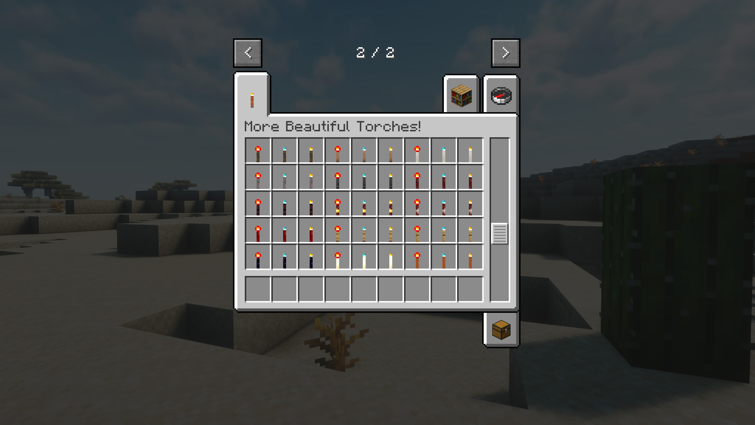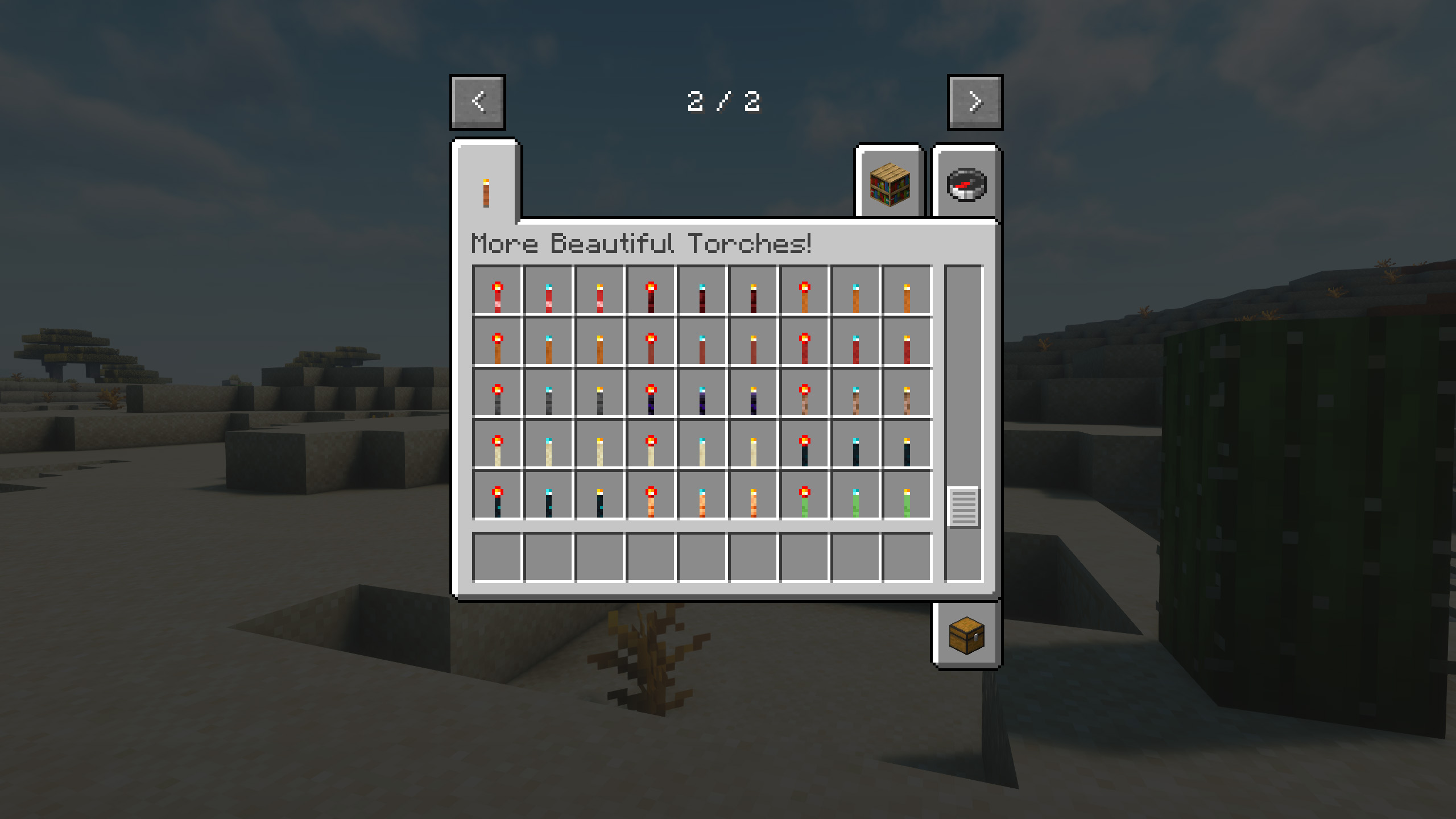 Цель мода More Beautiful Torches — расширить декоративные возможности игры, и для этого он в настоящее время добавляет более 600 вариантов факелов с надеждой на создание тематических вариантов для каждого элемента в игре.