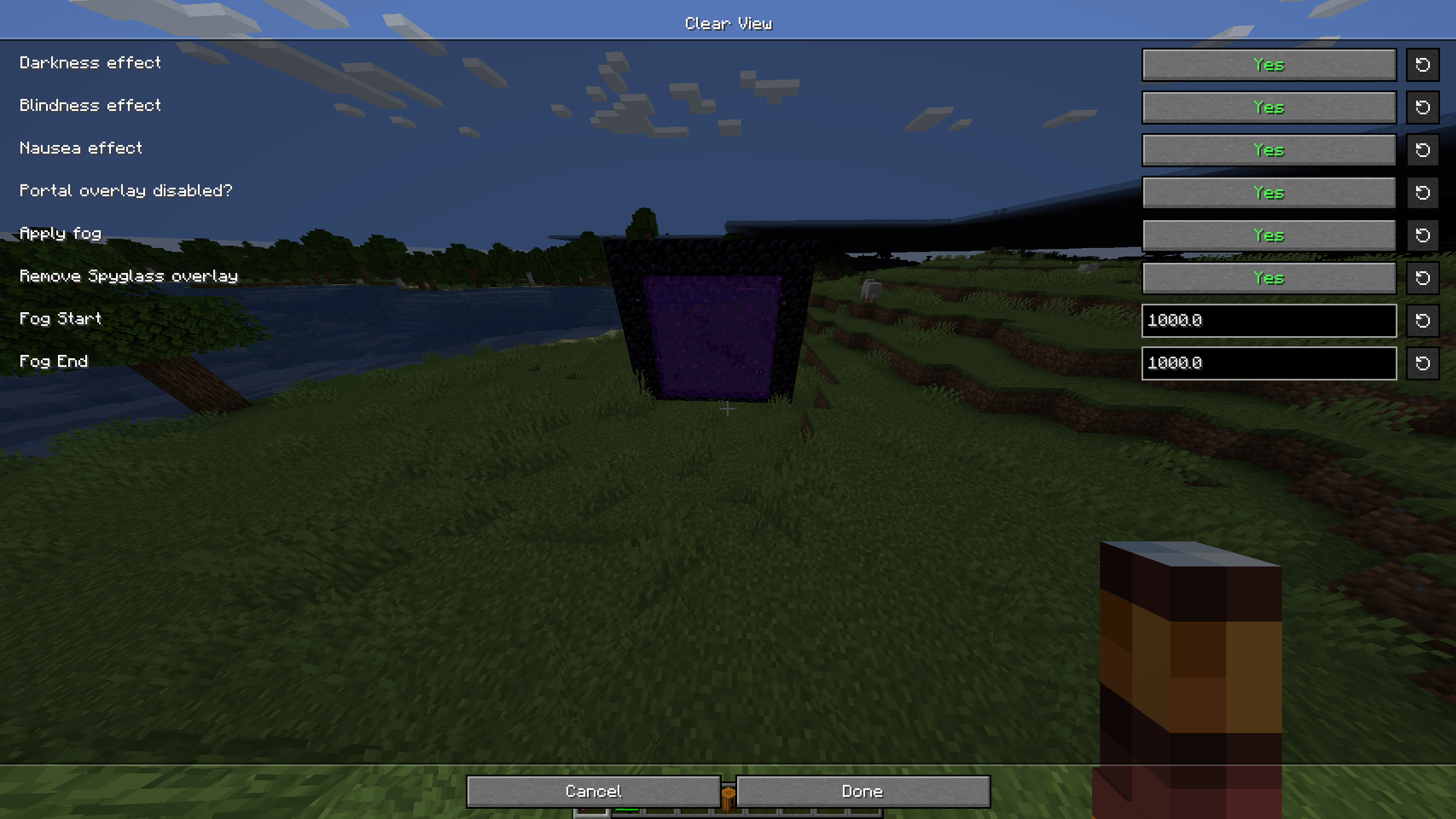 С Clearviews вам больше не придется сталкиваться с туманом в воде и лаве, или иметь ограниченный обзор из-за эффектов слепоты или темноты. Каждая функция настраивается, предоставляя вам полный контроль для настройки по вашему вкусу.