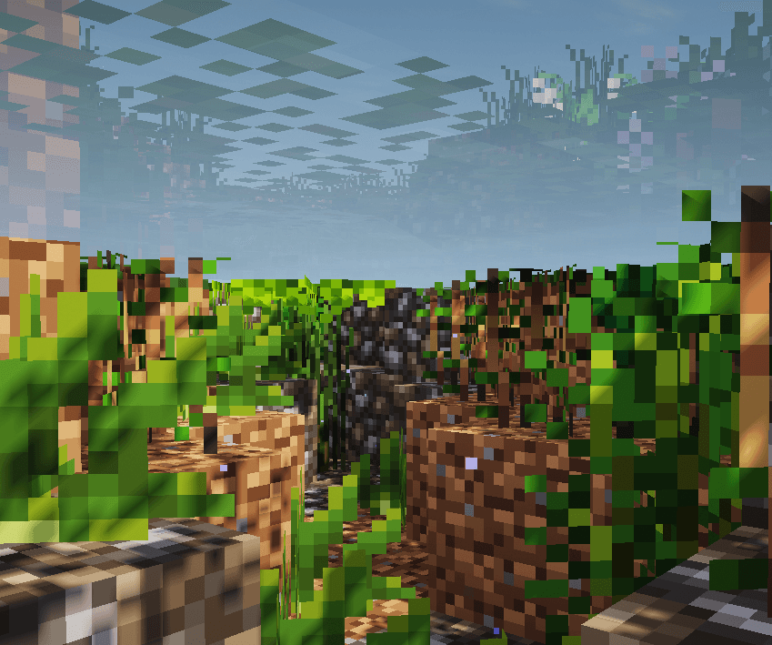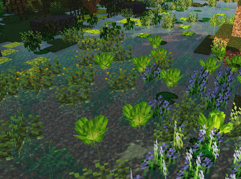 двухблочные растения будут немного темнее сверху без шейдерпаков.