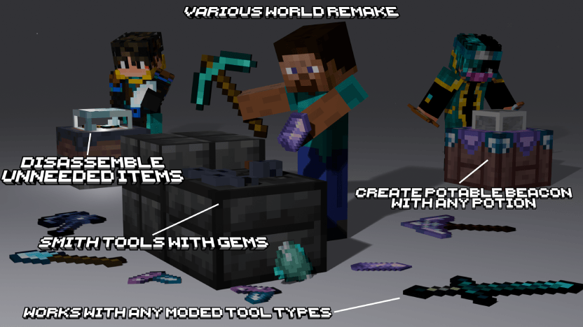 Various World - модификация, добавляющая различные элементы для улучшения Minecraft. Various World версия 'r' - ремейк версии, чтобы сделать модификацию менее RPG-ориентированной и более в стиле vanilla+