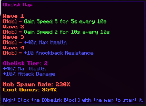 Когда волны мобов закончатся, появятся сундуки с наградами, содержащие ценные предметы, которые можно скрафтить в Orbs, изменяющие вашу следующую карту обелиска, что увеличивает награды и сложность еще больше.