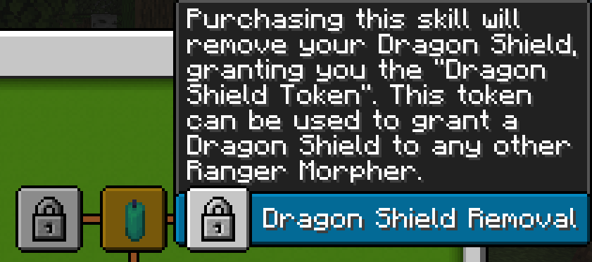 Чтобы получить Драконий Щит / Золотой Морфер, вам нужно повысить уровень в качестве Зелёного Рейнджера, чтобы приобрести следующий навык, который позволяет извлечь Токен Драконьего Щита из вашего морфера, превращая его в серебряный, и позволяя объединить его с любым морфером, используя тот же метод Приседания + Правый клик, что и для помещения обычной Монеты Силы в Морфер: