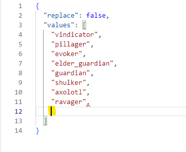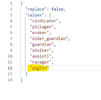 Добавьте ID моба и не забудьте добавить кавычки " ".