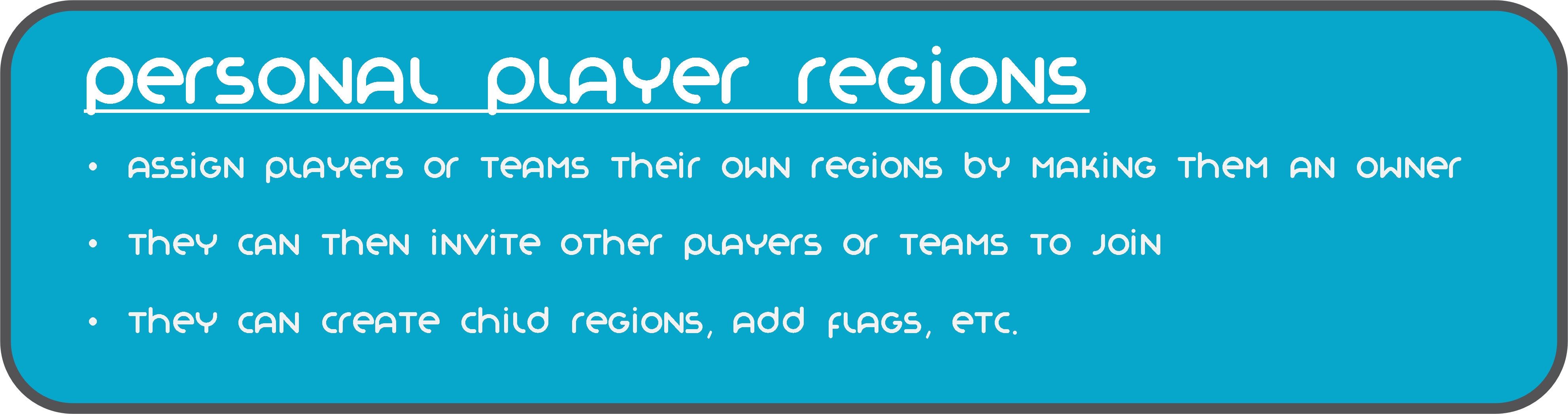 Это позволяет автоматизировать настройку регионов, добавлять/удалять игроков, включать или отключать регионы и т.д.