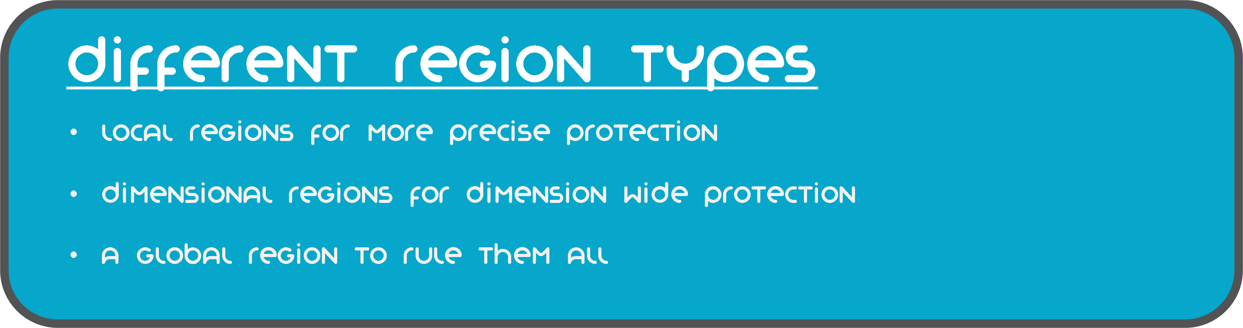 Локальные Регионы — это регионы, которые вы, скорее всего, знаете из WorldGuard или WorldProtector. Они имеют определенную область, в которой действуют и к которой ограничены.