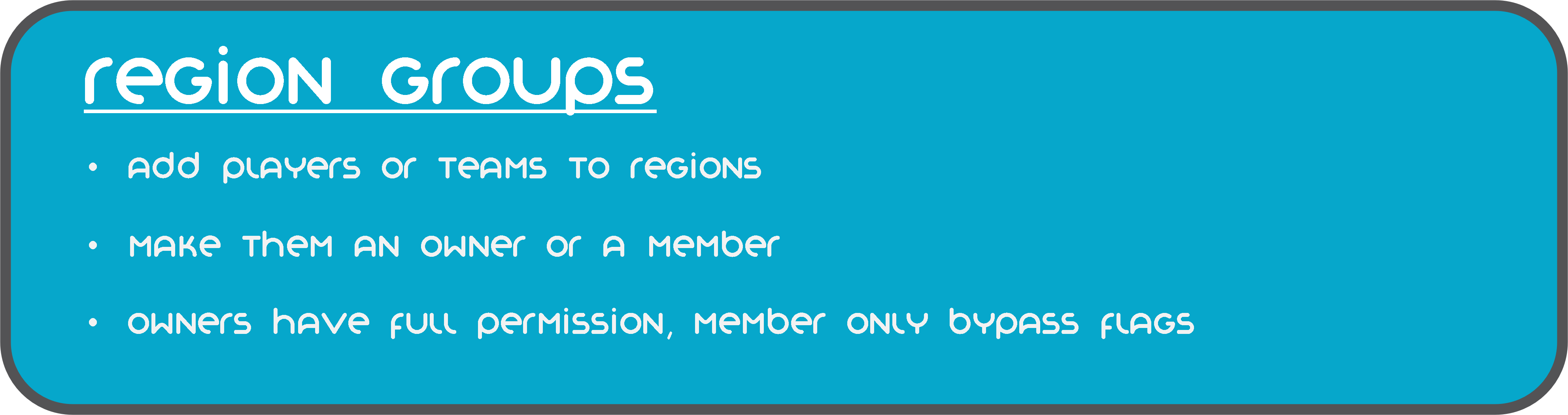 Регионы имеют владельцев и обычных участников. Владельцам разрешено управлять регионом и обходить флаги, участникам разрешено только обходить флаги, установленные в регионе.