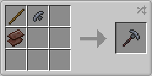 Крюк-топор/Мультитул, который позволяет игроку добывать любой блок с эффективностью алмазной или железной версии соответствующего инструмента (я забыл), но не позволяет использовать функциональность правого щелчка.