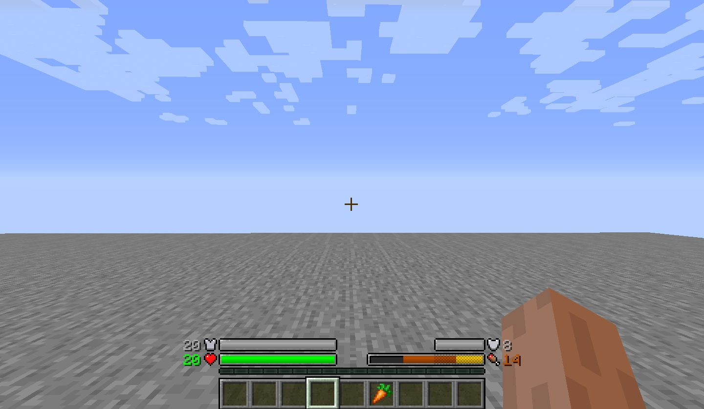 Прочность брони отображается над панелью голода (по умолчанию только ванильная алмазная броня имеет её, но другие моды могут добавлять более прочную броню).