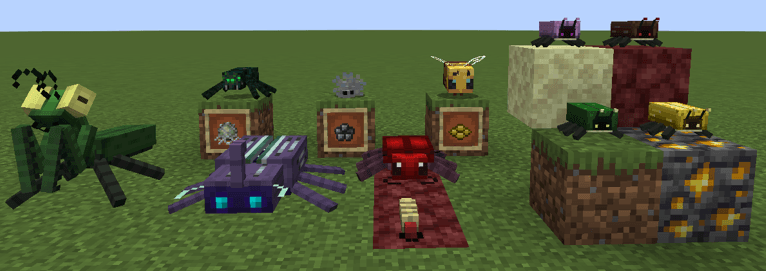 Данный мод добавляет разнообразный контент, связанный с насекомыми и пауками, расширяя роль и функциональность ванильных Пауков и Чешуйниц, а также добавляя ряд совершенно новых мобов-насекомых. Мод также добавляет новые наборы брони, получаемые через создаваемые Накладки для брони, новые зачарования, новый рецепт зелья эффекта Сопротивления, а также новых питомцев и прислужников.